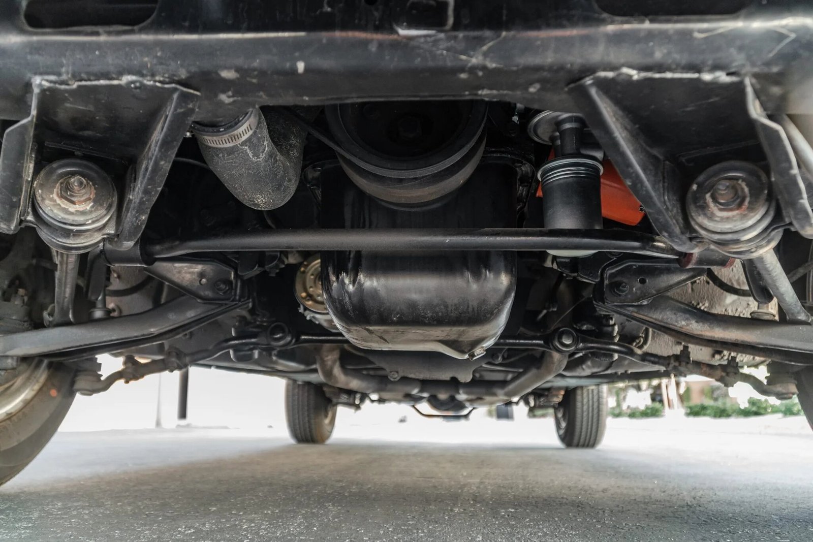 Modifications include tinted windows as well as an aftermarket exhaust system and speakers, and the car is also equipped with a floor-mounted shifter, a push-button AM radio, and 14″ styled steel wheels.