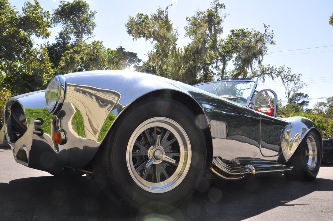 This Kirkham 427 S/C Cobra replica was purchased new as a completed build, the car utilizes a polished aluminum body over a powder-coated steel frame and is powered by a 496ci V8 fitted with a Holley carburetor and paired with a five-speed manual gearbox. Period-style details are joined by modern additions including Wilwood four-wheel disc brakes, Penske coilovers, and a halon fire suppression system.
