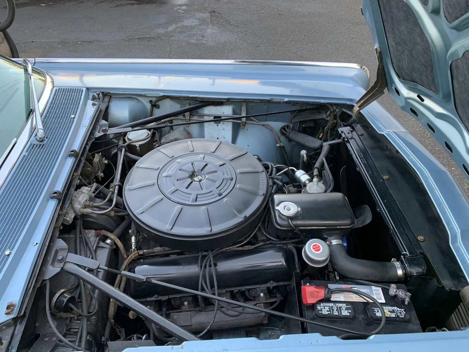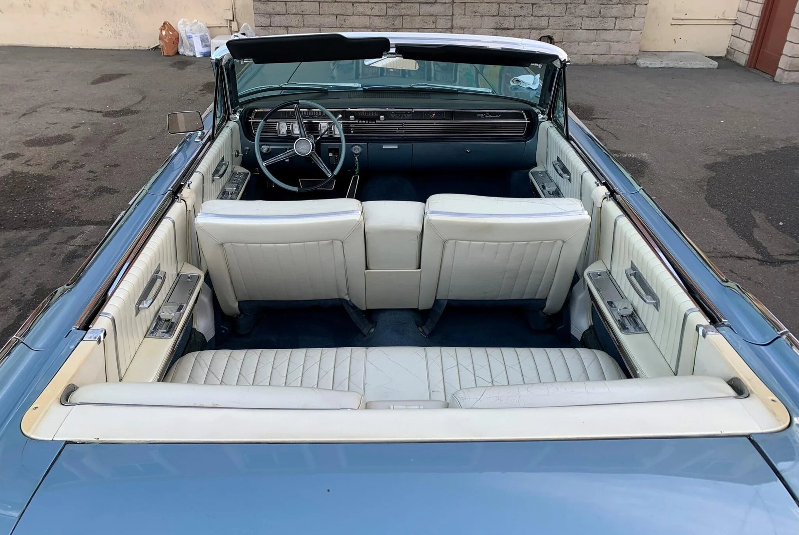 This four-door convertible was built on July 12, 1965 at Ford’s Wixom, Michigan assembly plant and is finished in Huron Blue Metallic (Q).