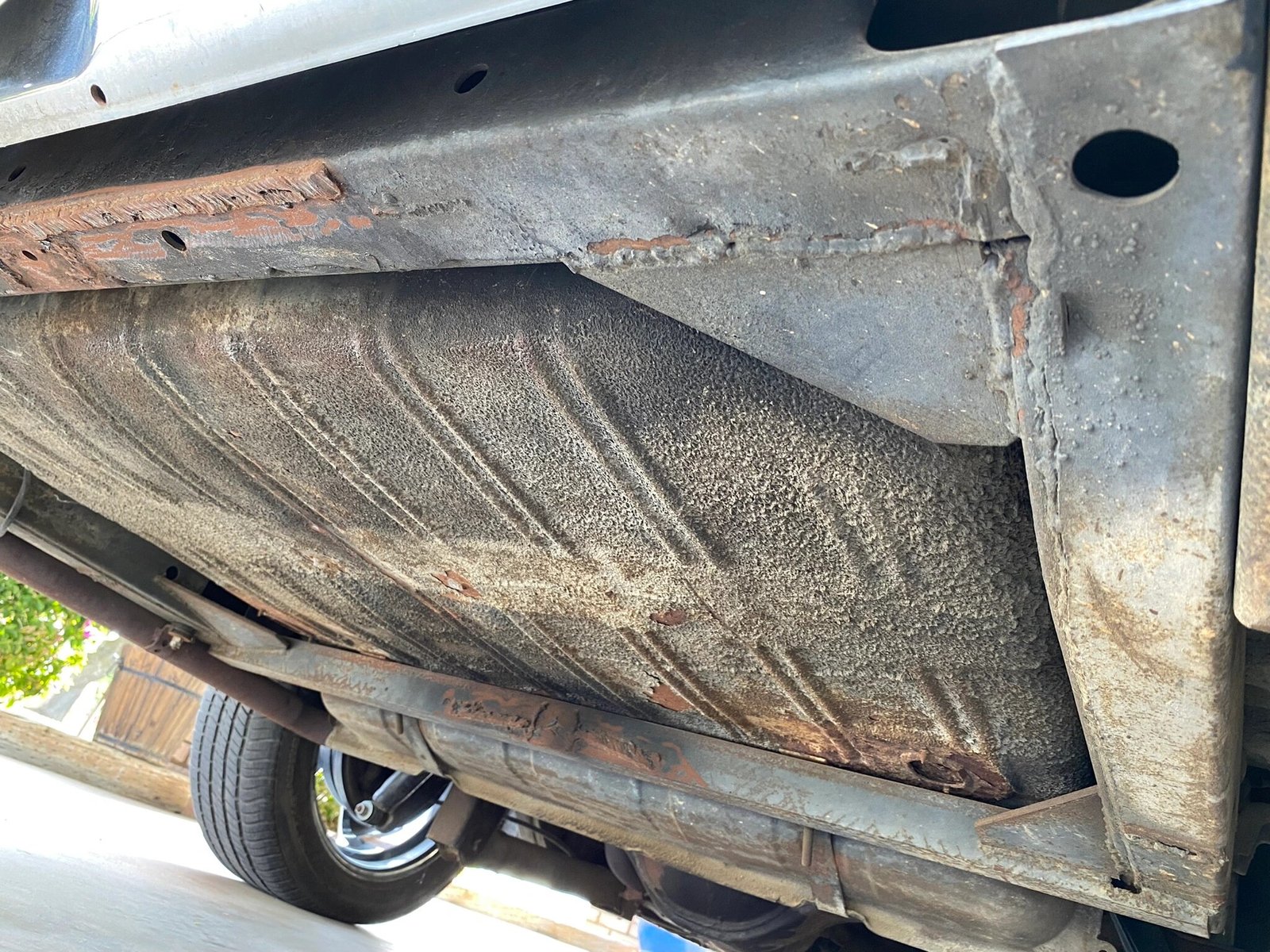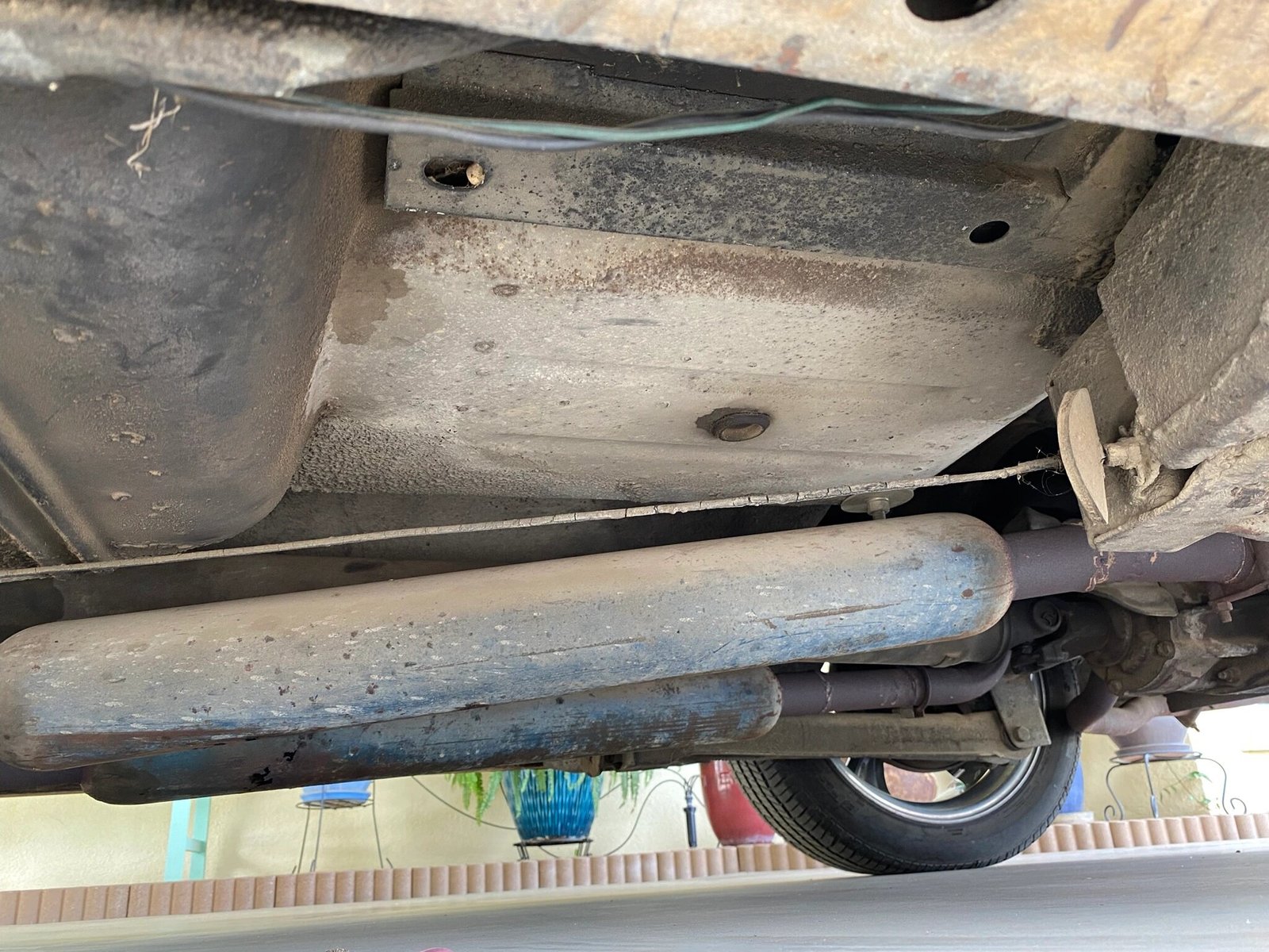 The car is equipped with power-assisted steering and drum brakes, and service has included replacement of the steering box and installation of a dual-reservoir master cylinder.