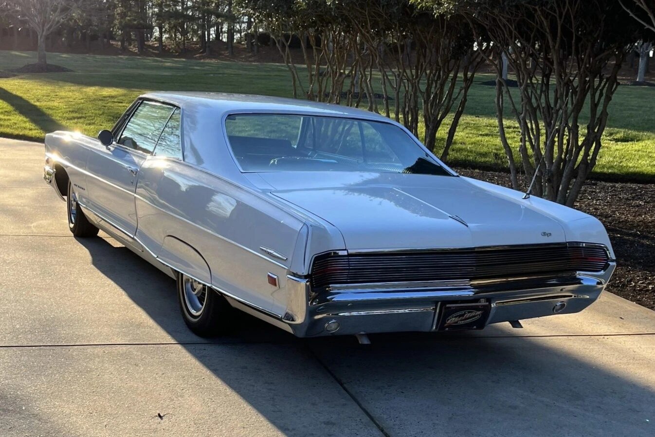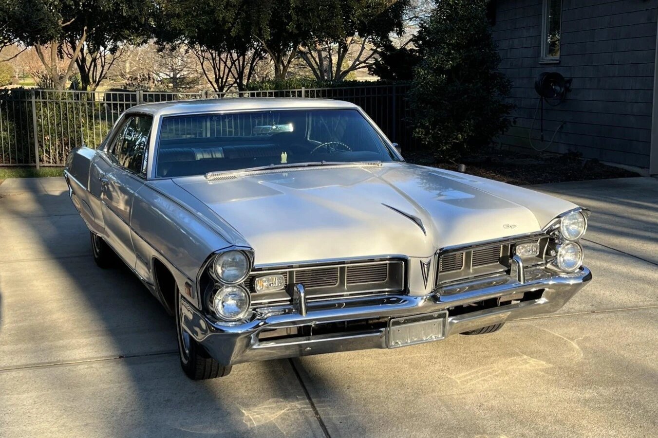 The 389ci V8 breathes through a four-barrel Carter carburetor and a dual exhaust system, and it was rated at 325 horsepower and 429 lb-ft of torque when new.
