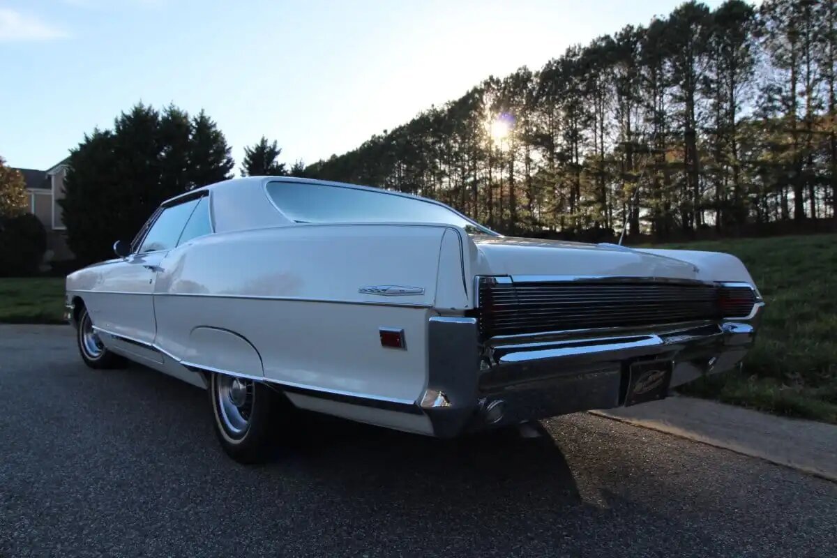 The car is finished in ivory over a black vinyl interior and is powered by a 389ci V8 paired with a three-speed Turbo Hydra-Matic automatic transmission.