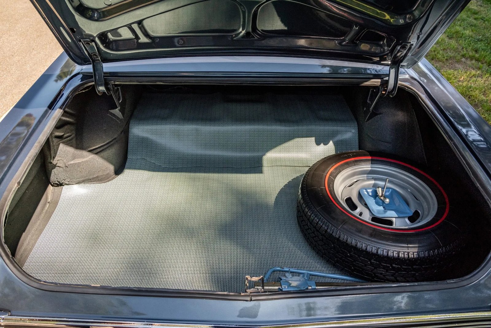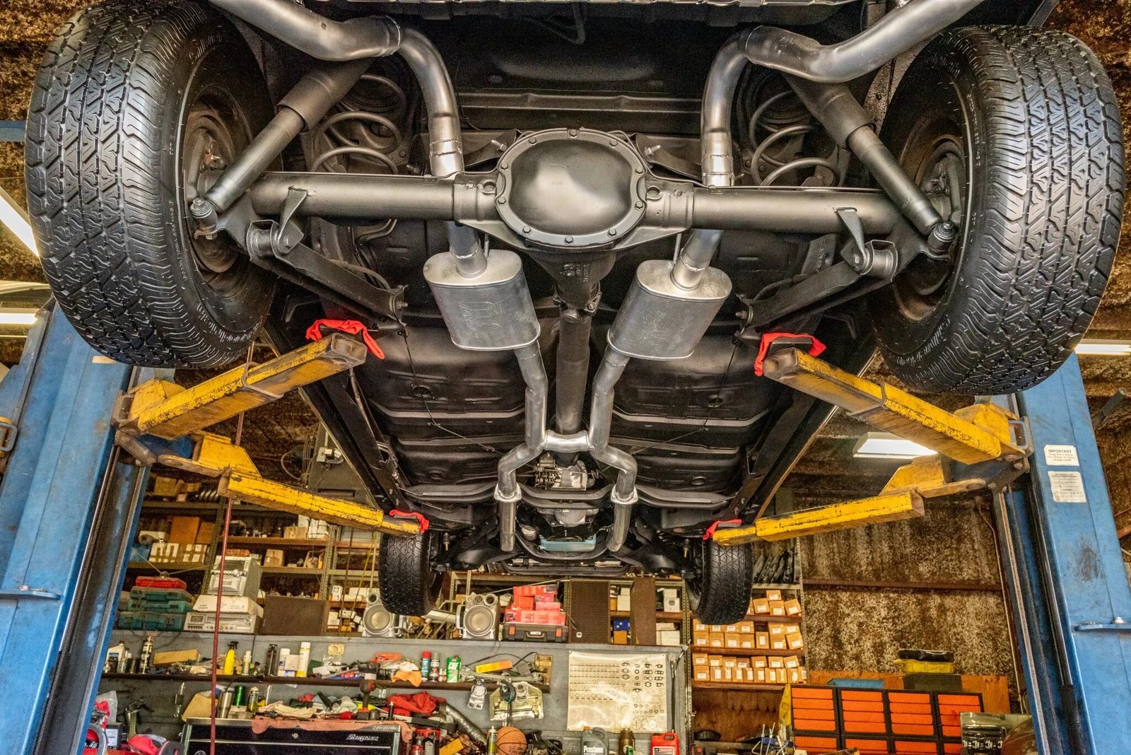Power is delivered to the rear wheels through a Muncie four-speed manual transmission and a 3.23:1 rear axle. The transmission have been rebuilt and features a replacement flywheel, clutch, and pressure plate. A custom dual exhaust system with a cross-over pipe and Magnaflow mufflers is fitted.