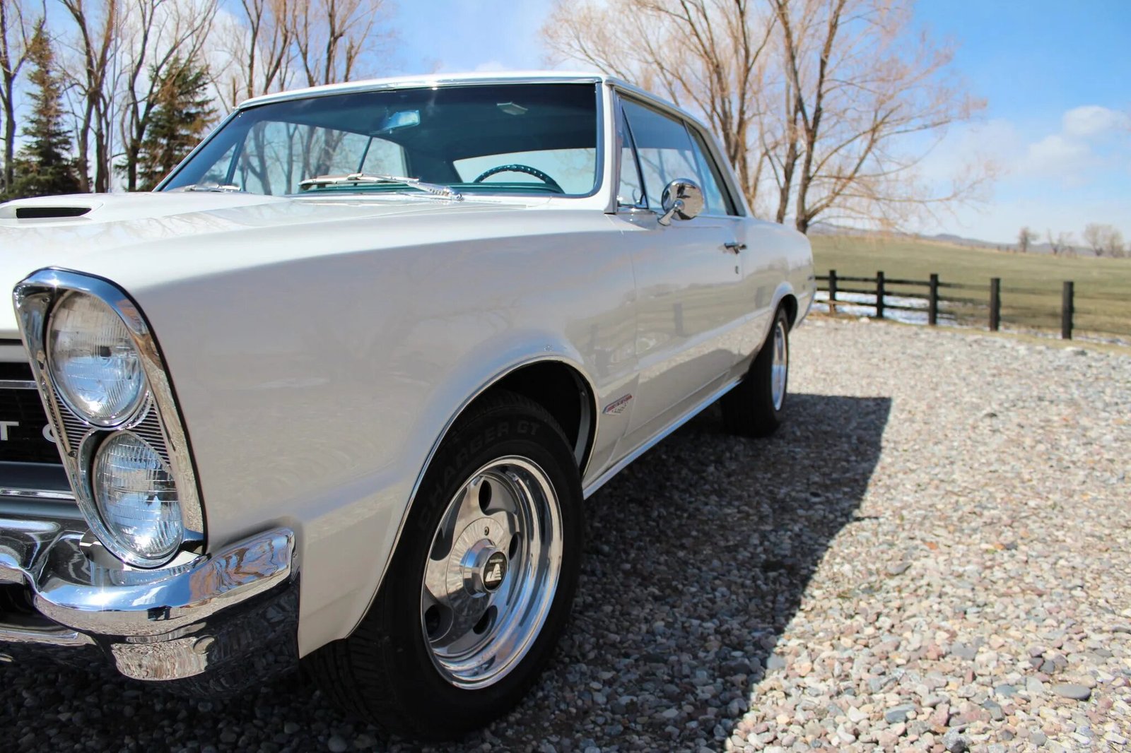 Polished 15″ Progressive wheels are mounted with a mix of Kelly Charger GT and Dunlop G/T Qualifier tires, and a spare is housed in the trunk.