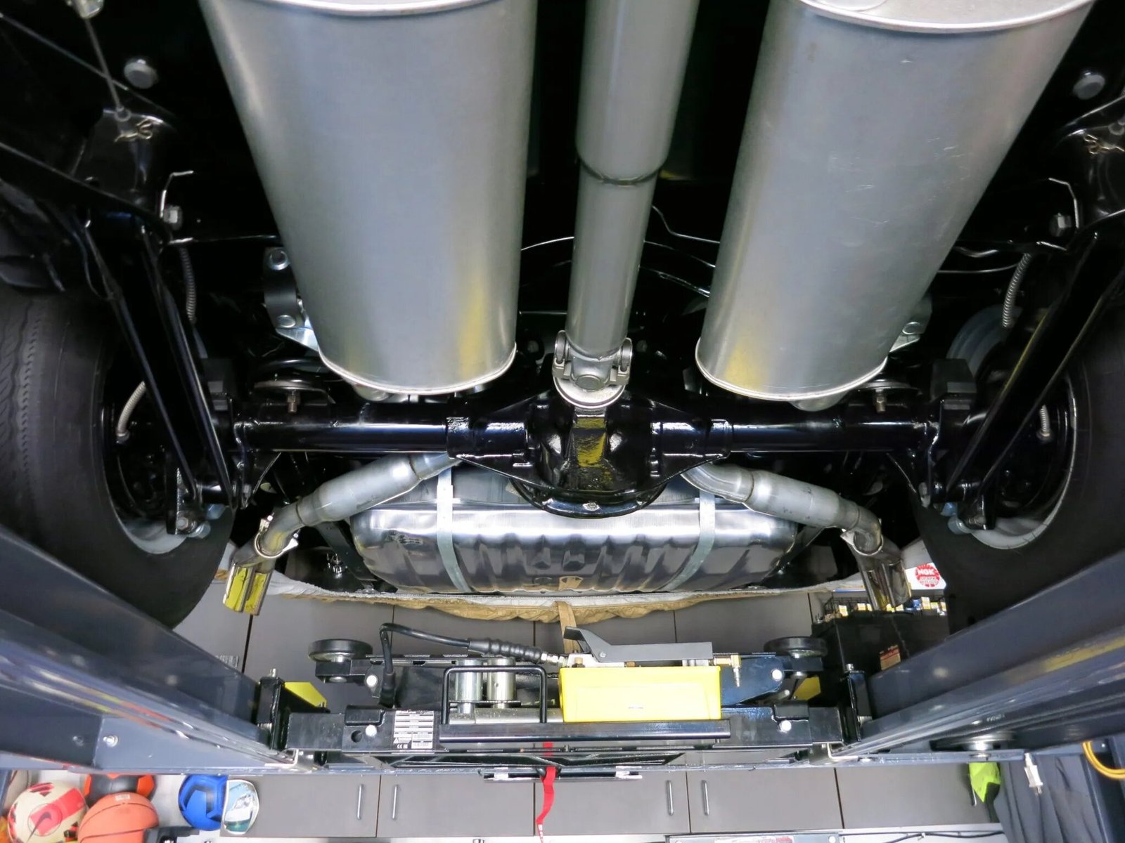 The 389ci V8 was removed and fitted with a replacement short block in 2023. It is equipped with three Rochester two-barrel carburetors and was factory-rated at 360 horsepower and 424 lb-ft of torque. Power is routed to the rear wheels through a four-speed Muncie M20 manual transmission and a 3.55:1 Safe-T-Track limited-slip differential.