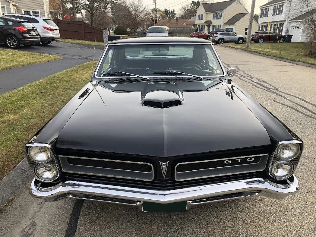 This GTO-style 1965 Pontiac Tempest is finished in black over black upholstery and powered by a replacement 455ci V8 paired with a Muncie four-speed manual transmission.