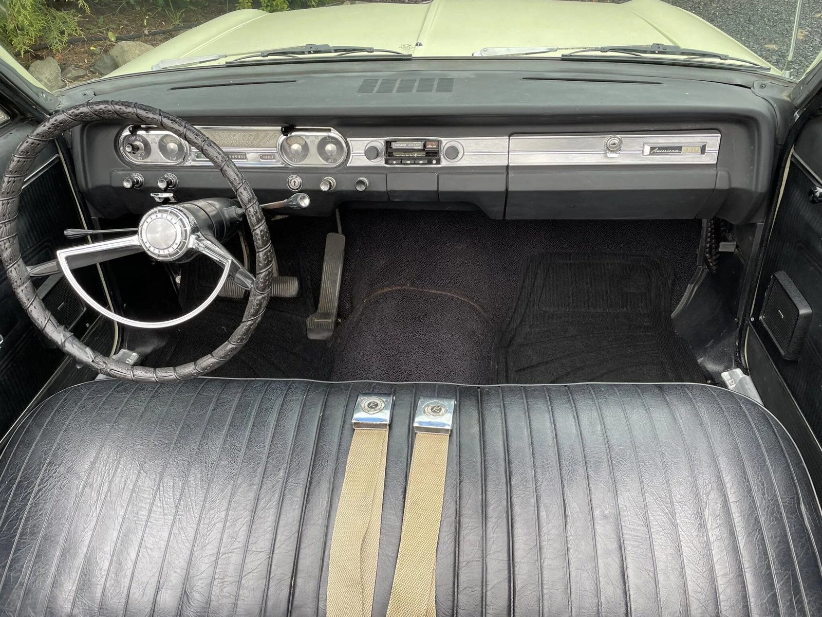 Equipment includes cream-colored front lap belts as well as a Pioneer AM/FM/cassette stereo mounted in the factory location.