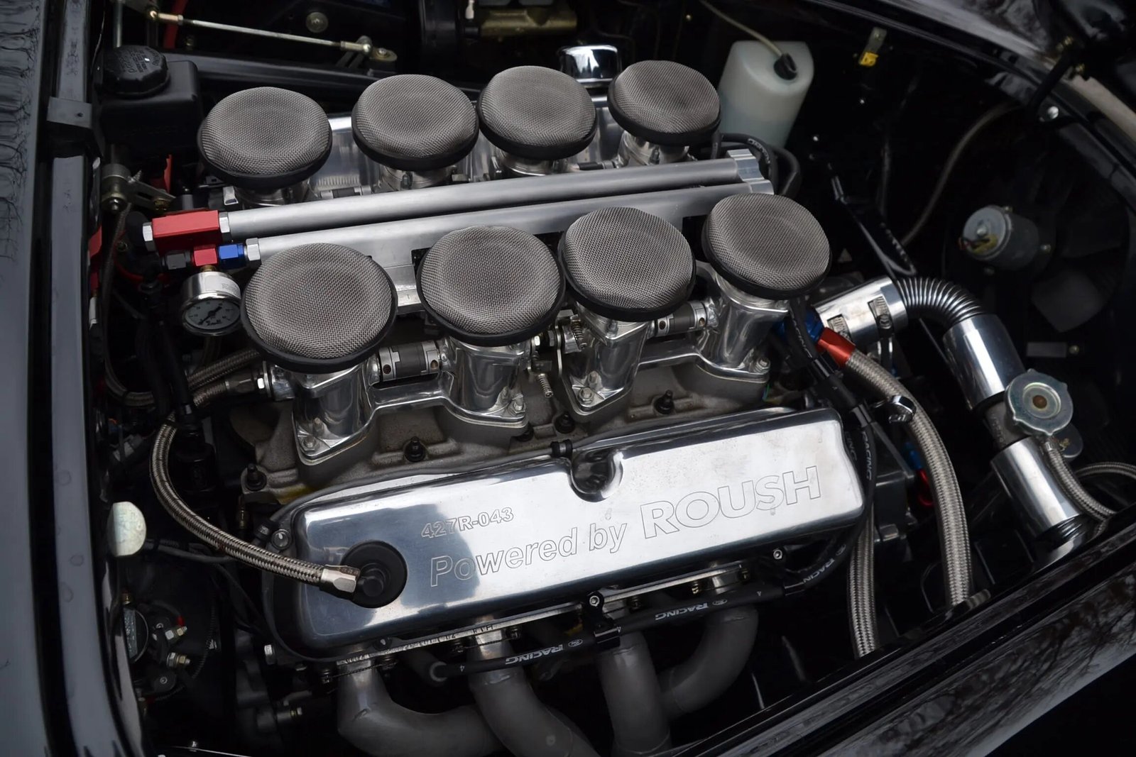 The fuel-injected Roush 427R V8 was installed by Anthem Motors and features individual throttle bodies as well as MSD ignition.