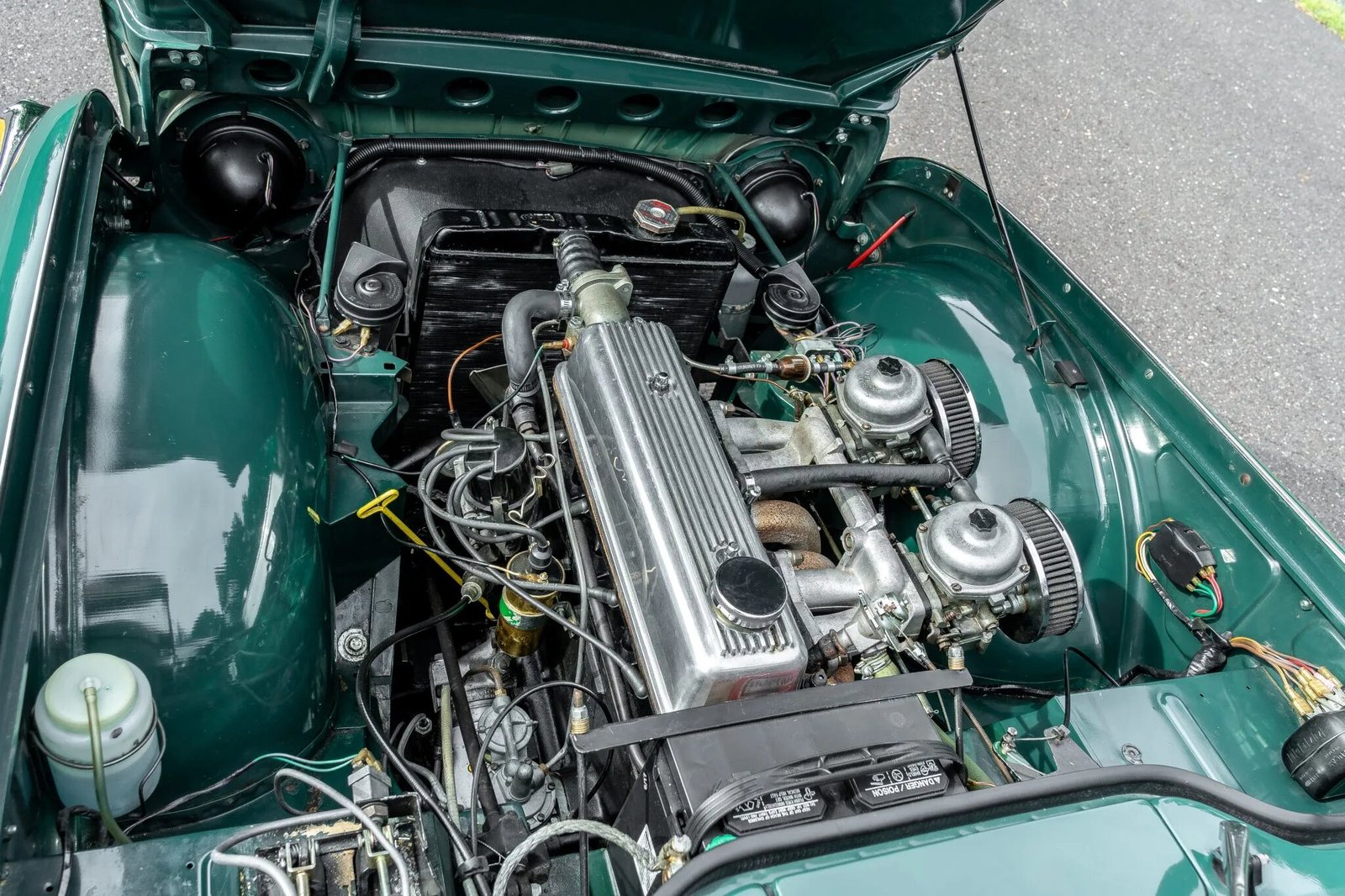 Originally finished in Signal Red, the body was disassembled, removed from the frame, and repainted British Racing Green in 1995 following rust repair of the frame and bodywork.