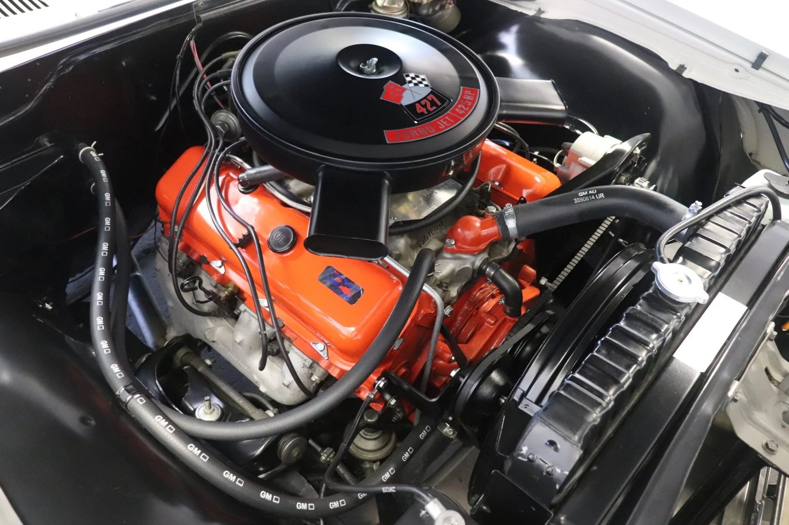 Equipment includes body-color post trim, a side mirror, quad headlights, and 427 badging on the front fenders.