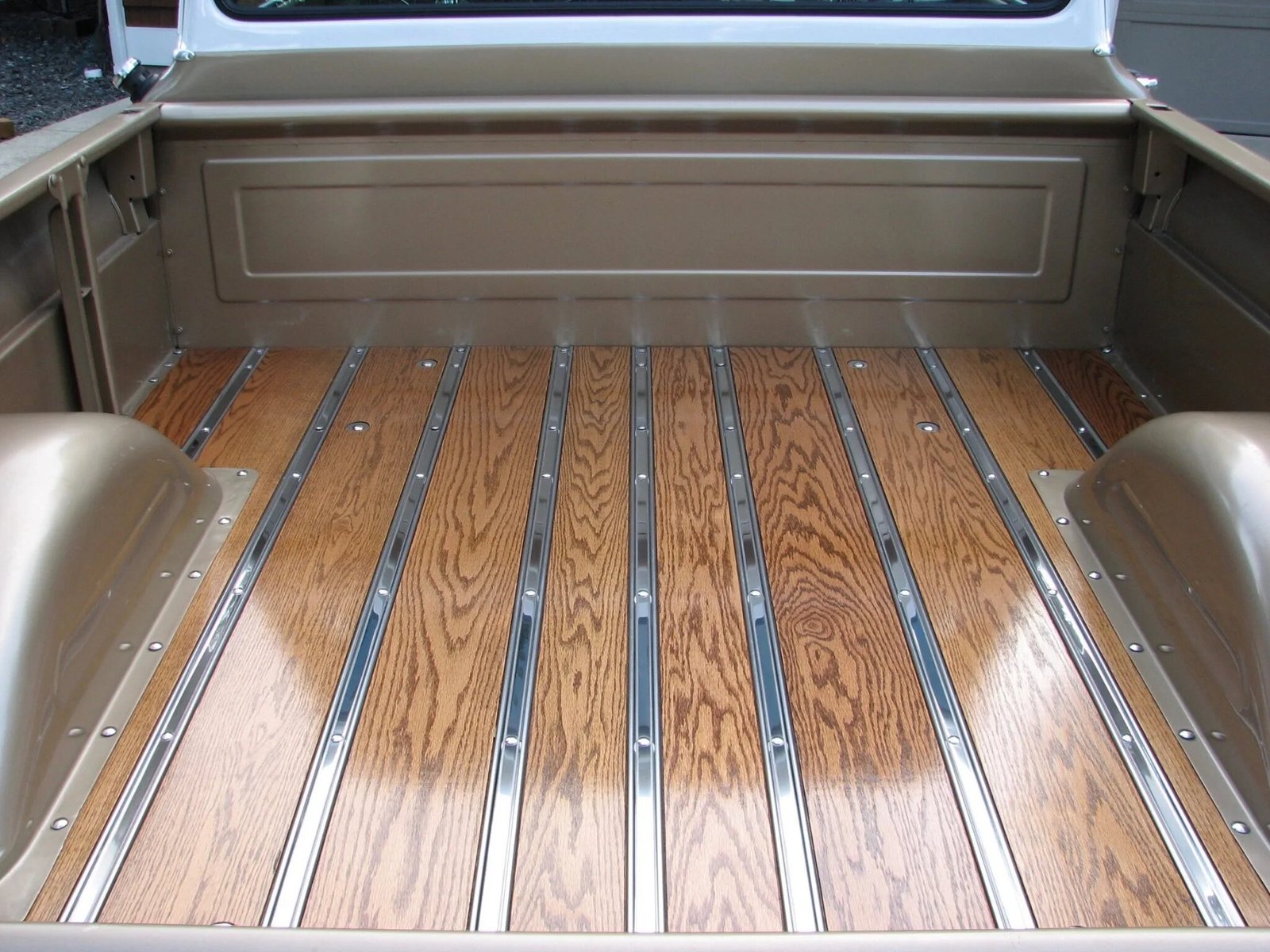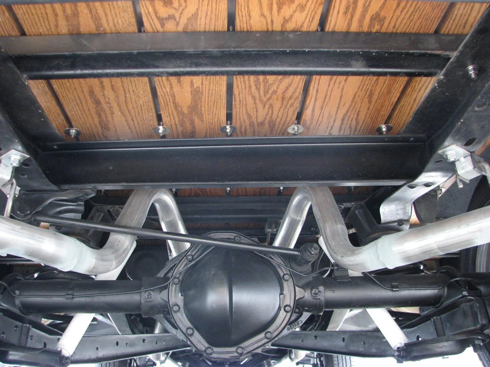 Features added to the truck in the past year include an oak wood slat bed with stainless hardware, chrome bumpers, grille, and trim, and white lettering on the tailgate.