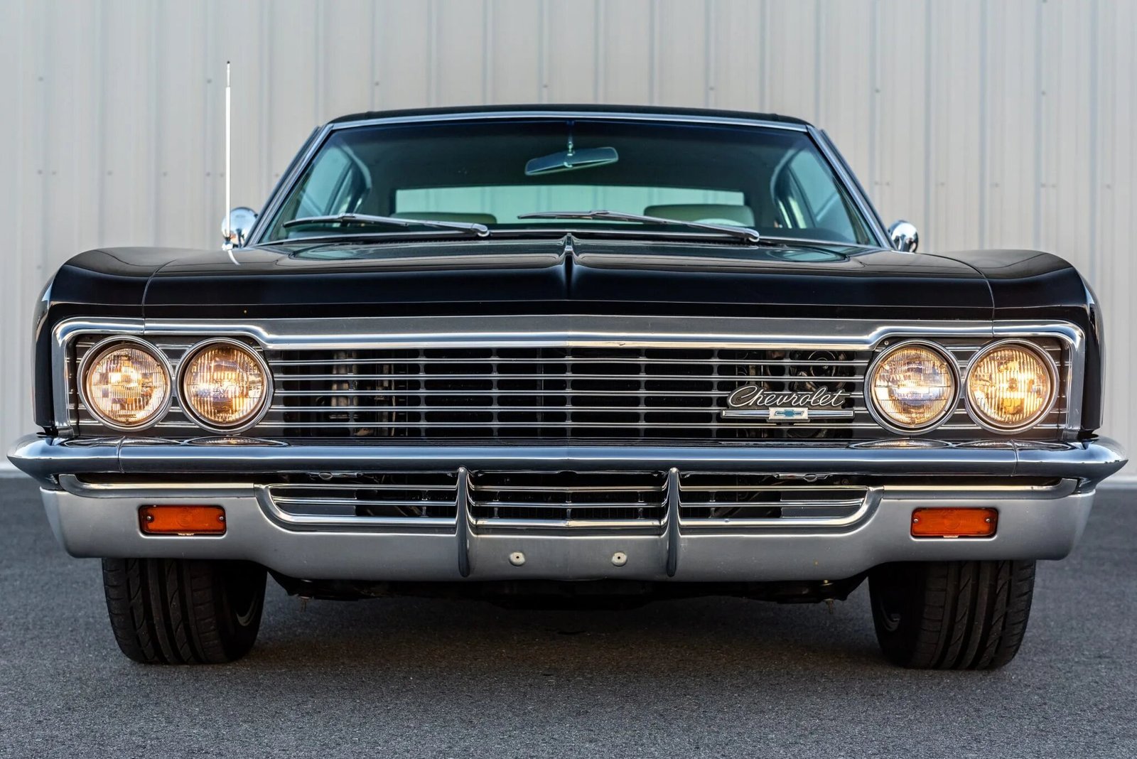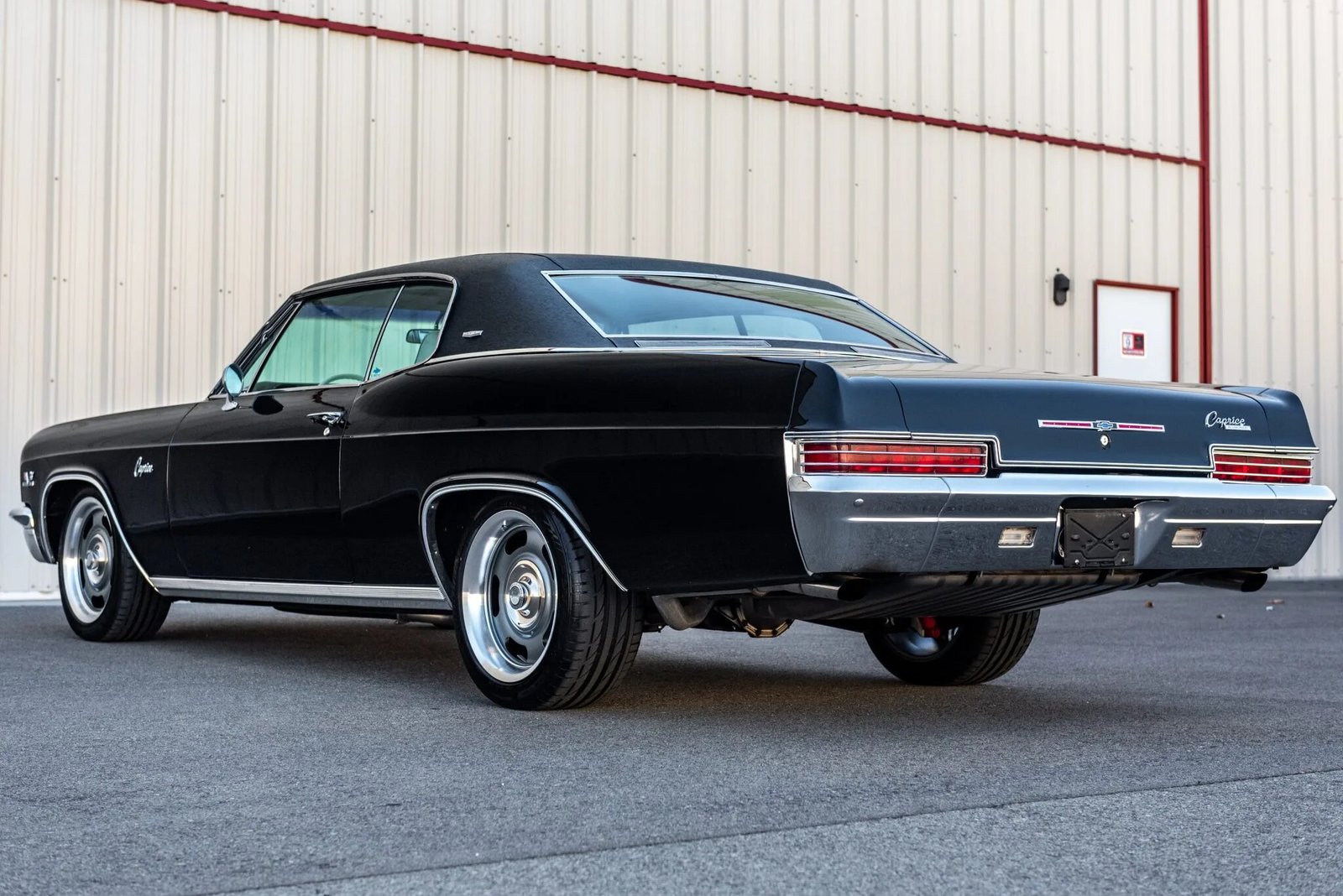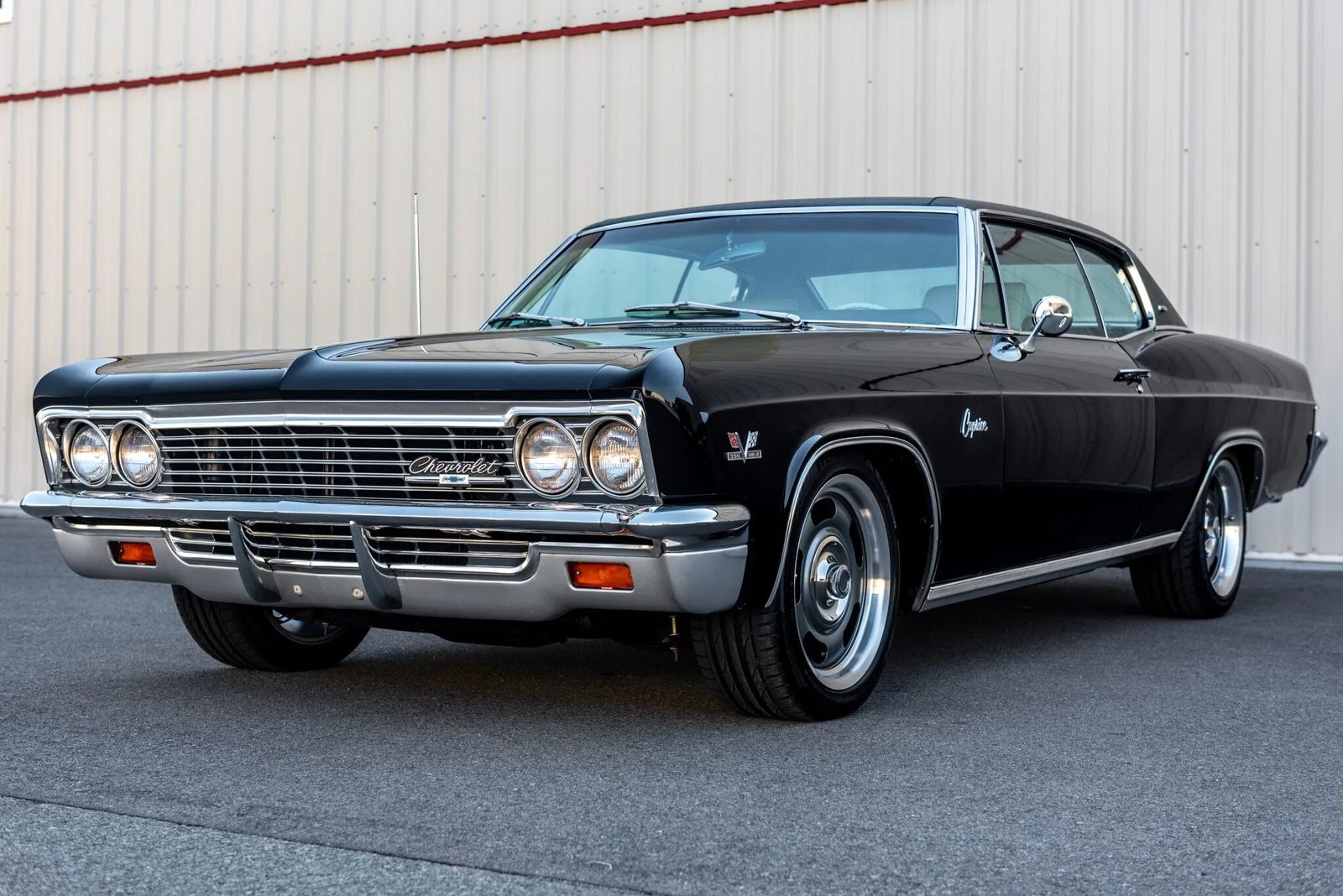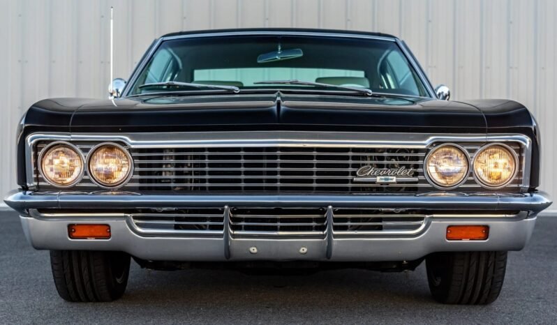 This 1966 Chevrolet Caprice coupe is finished in black over a Light Fawn interior and is powered by a replacement 396ci V8 paired with a three-speed automatic transmission.