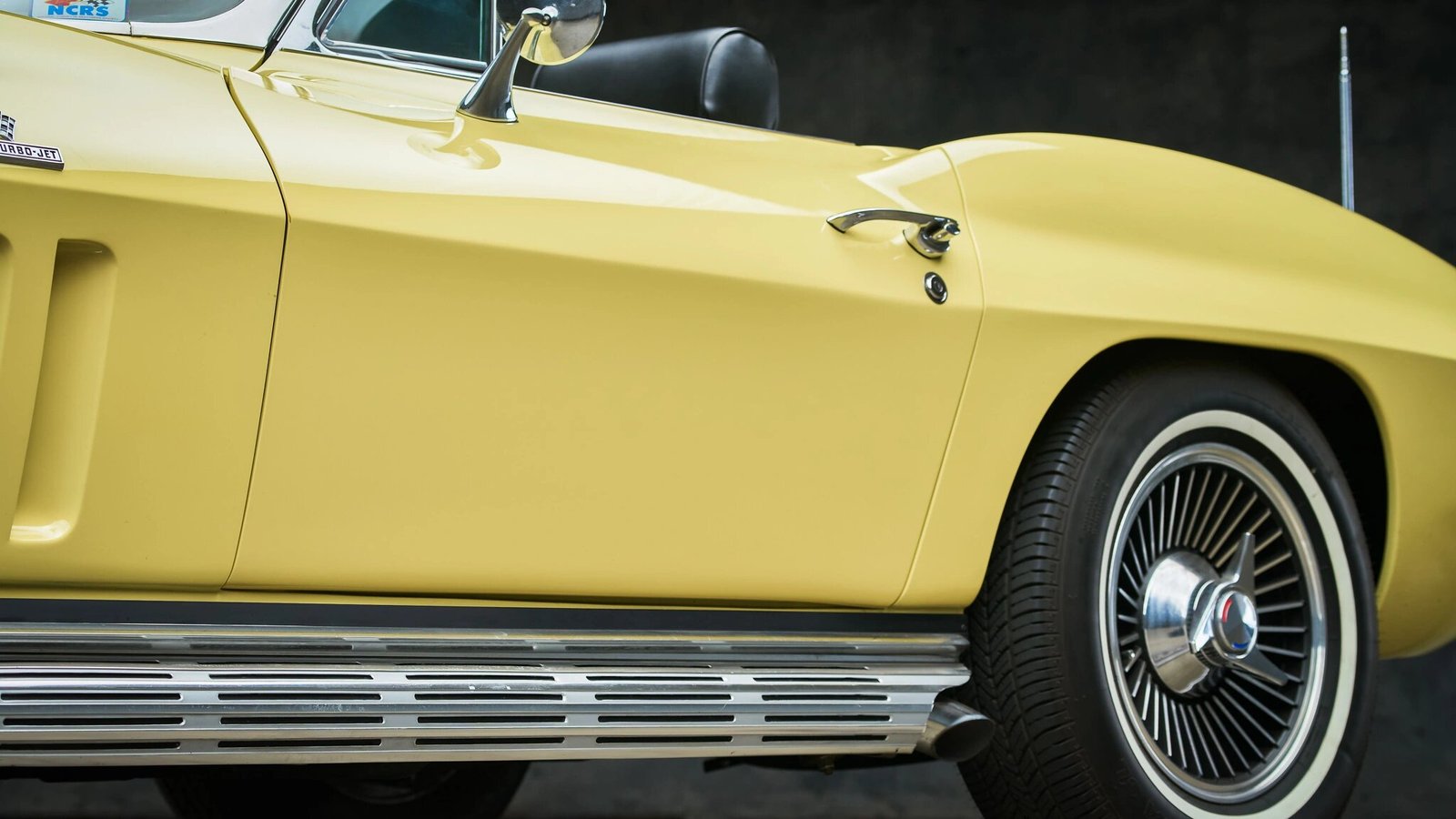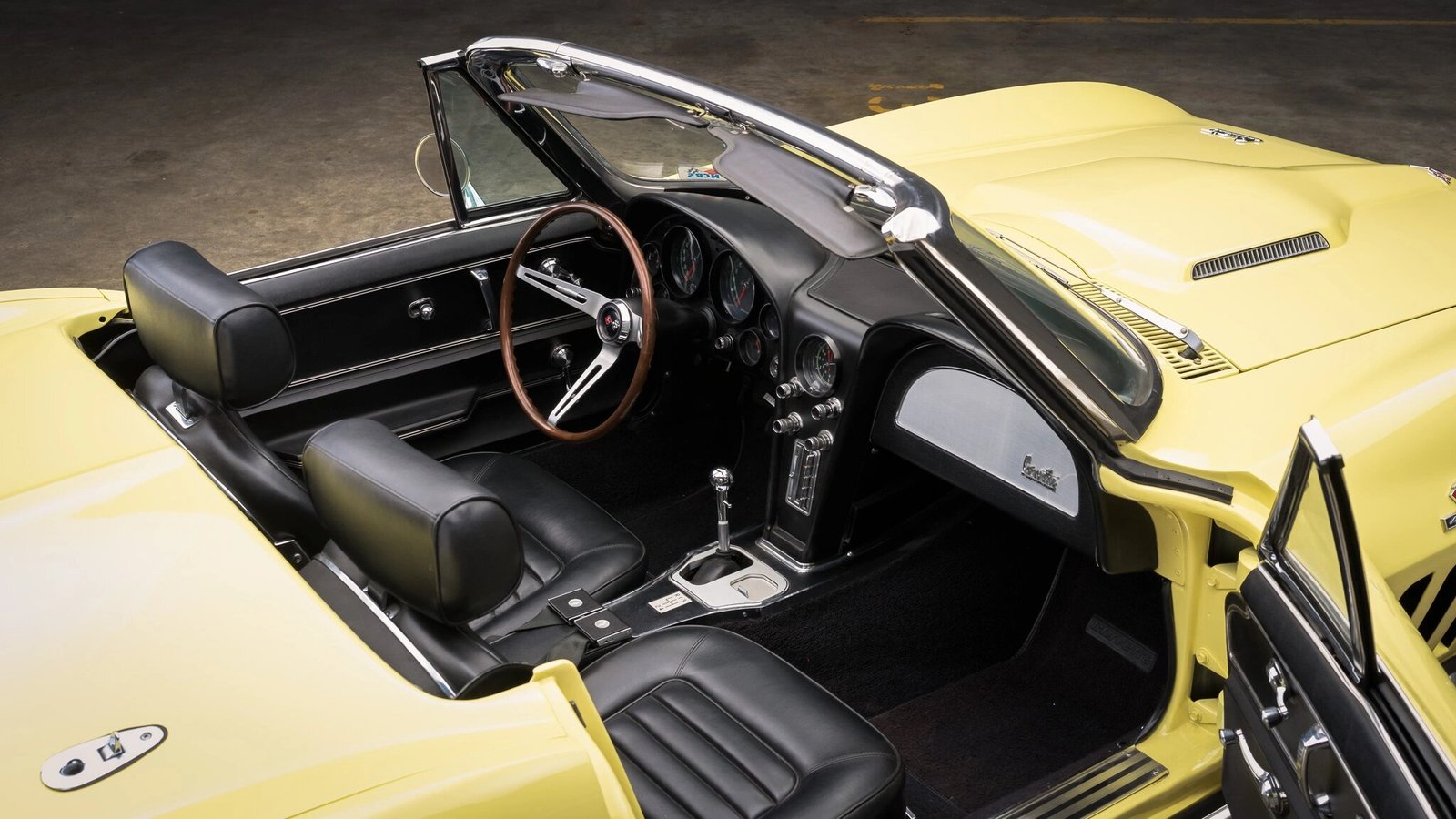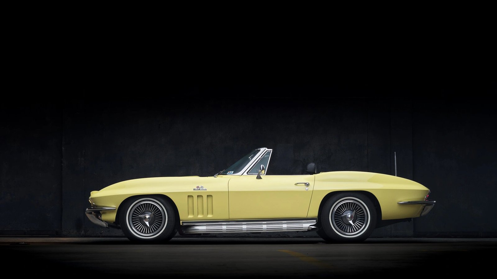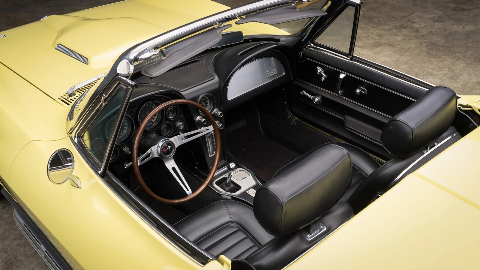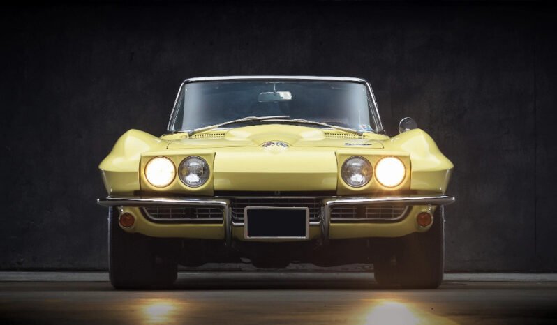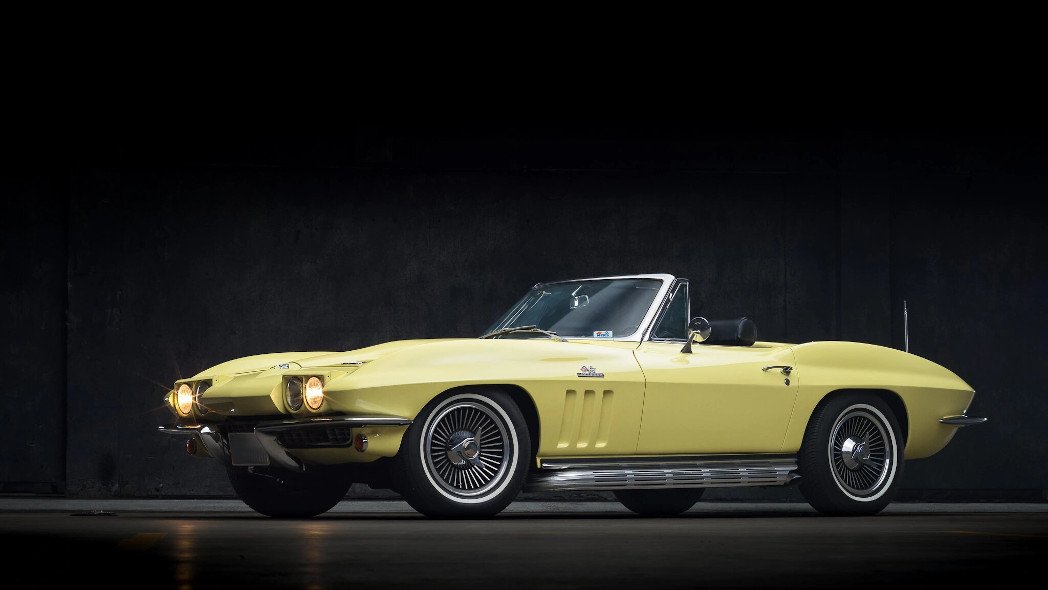 This 1966 Chevrolet Corvette convertible is finished in Sunfire Yellow over black and powered by a 427ci V8 paired with a close-ratio Muncie M21 four-speed manual transmission.