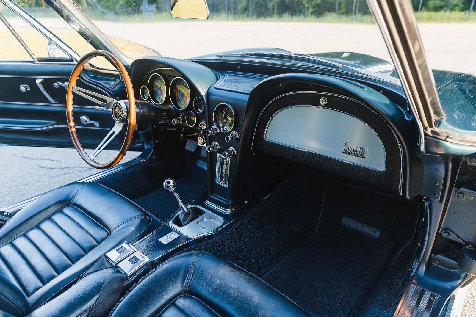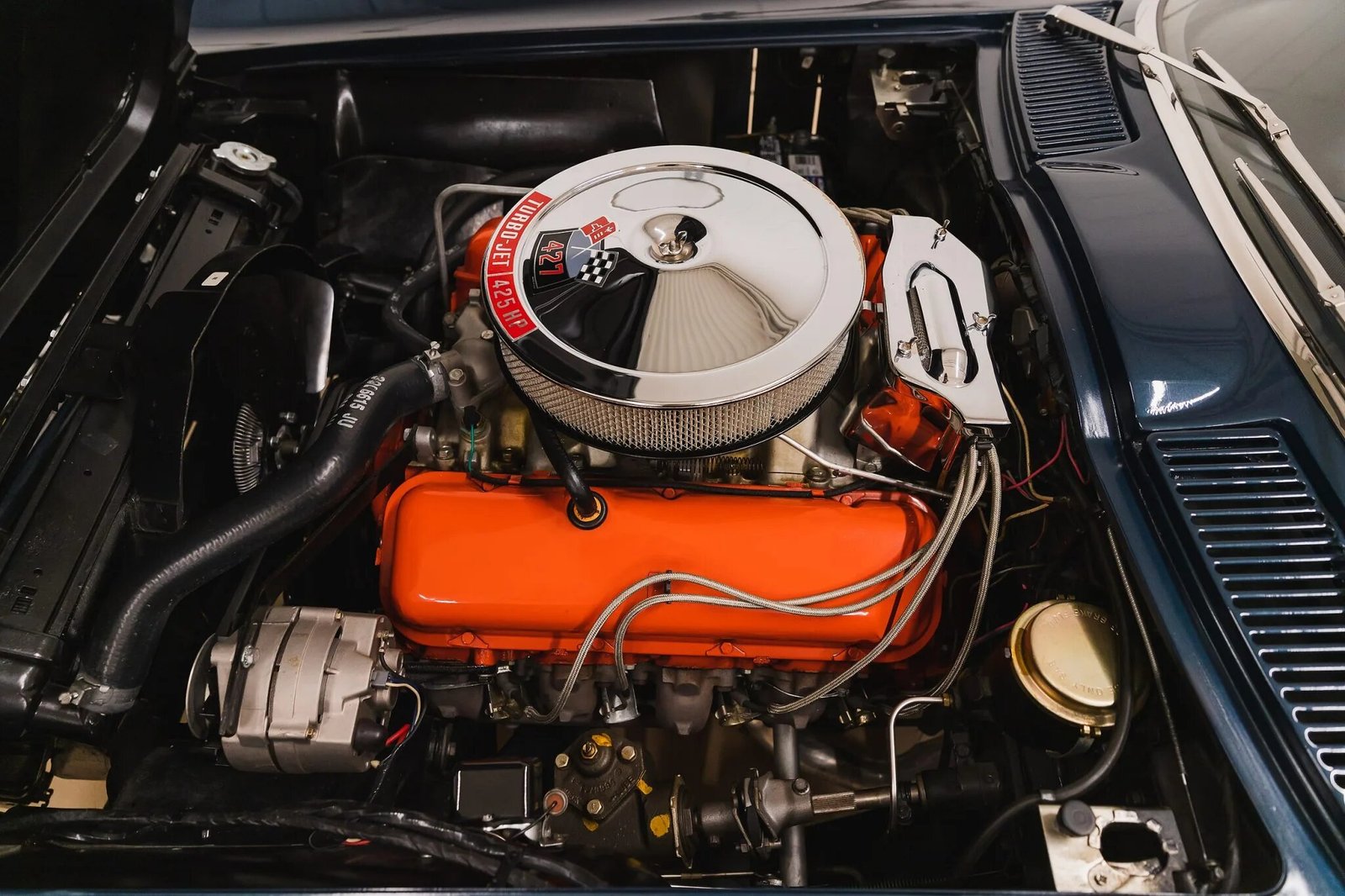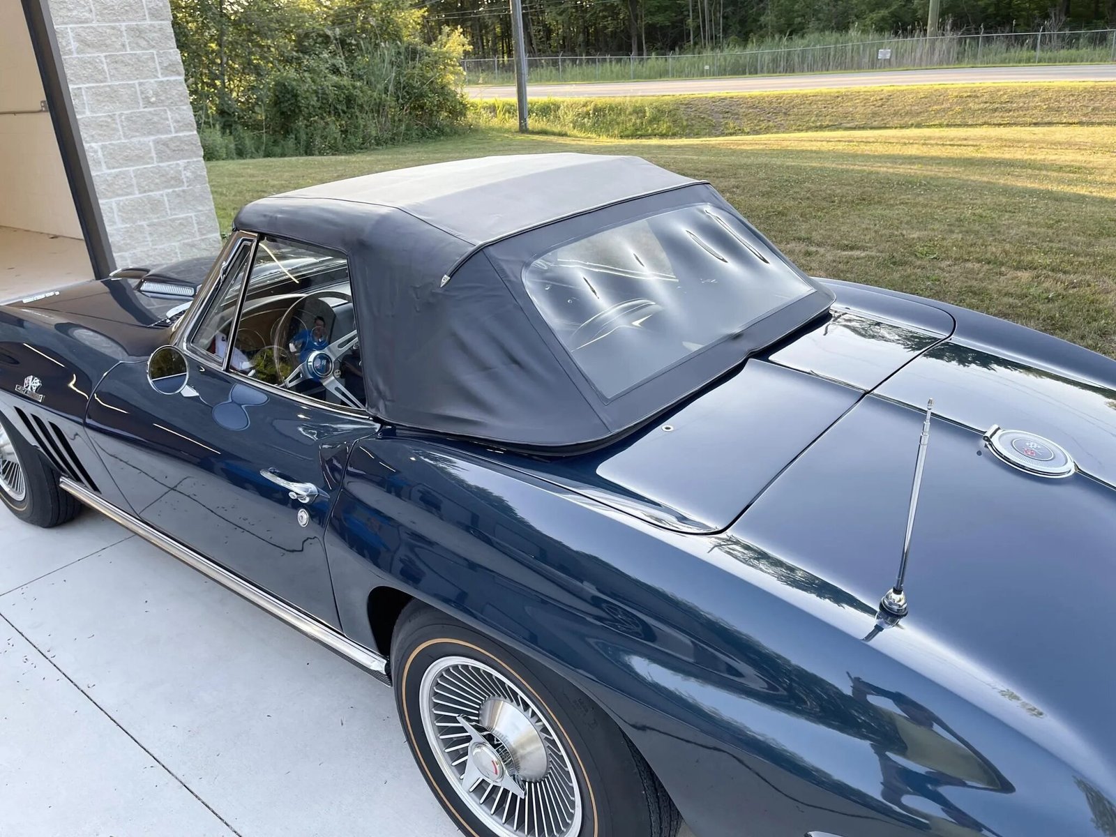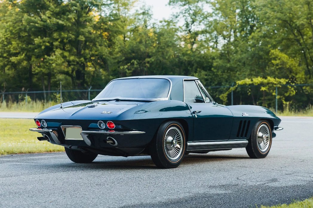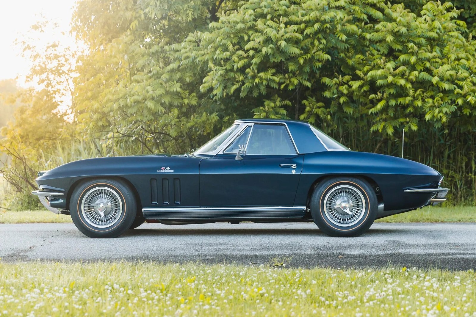 This 1966 Chevrolet Corvette convertible is finished in Laguna Blue over blue vinyl upholstery and powered by a 427ci V8 mated to a Muncie M21 four-speed manual transmission and a Positraction rear axle.