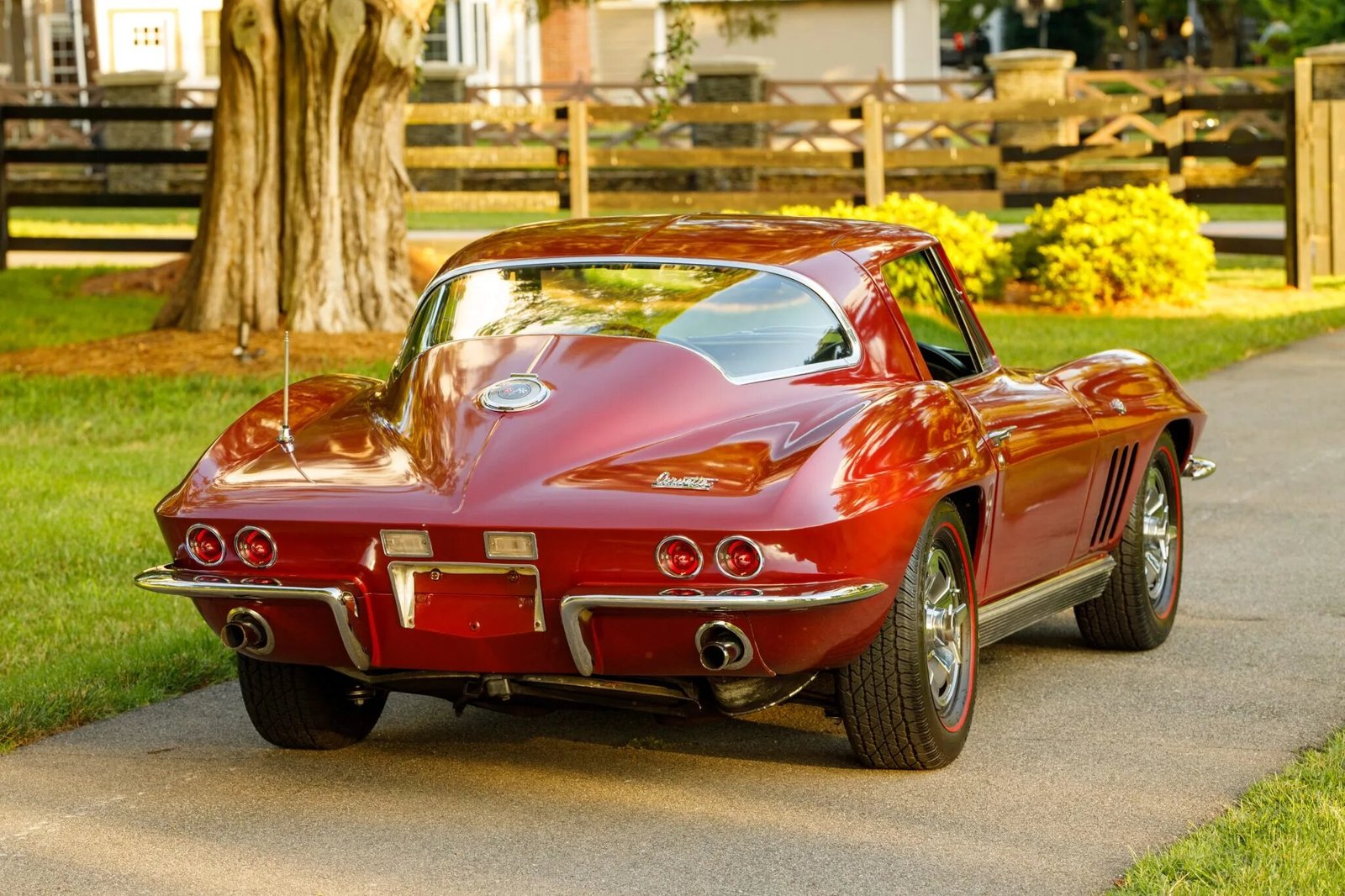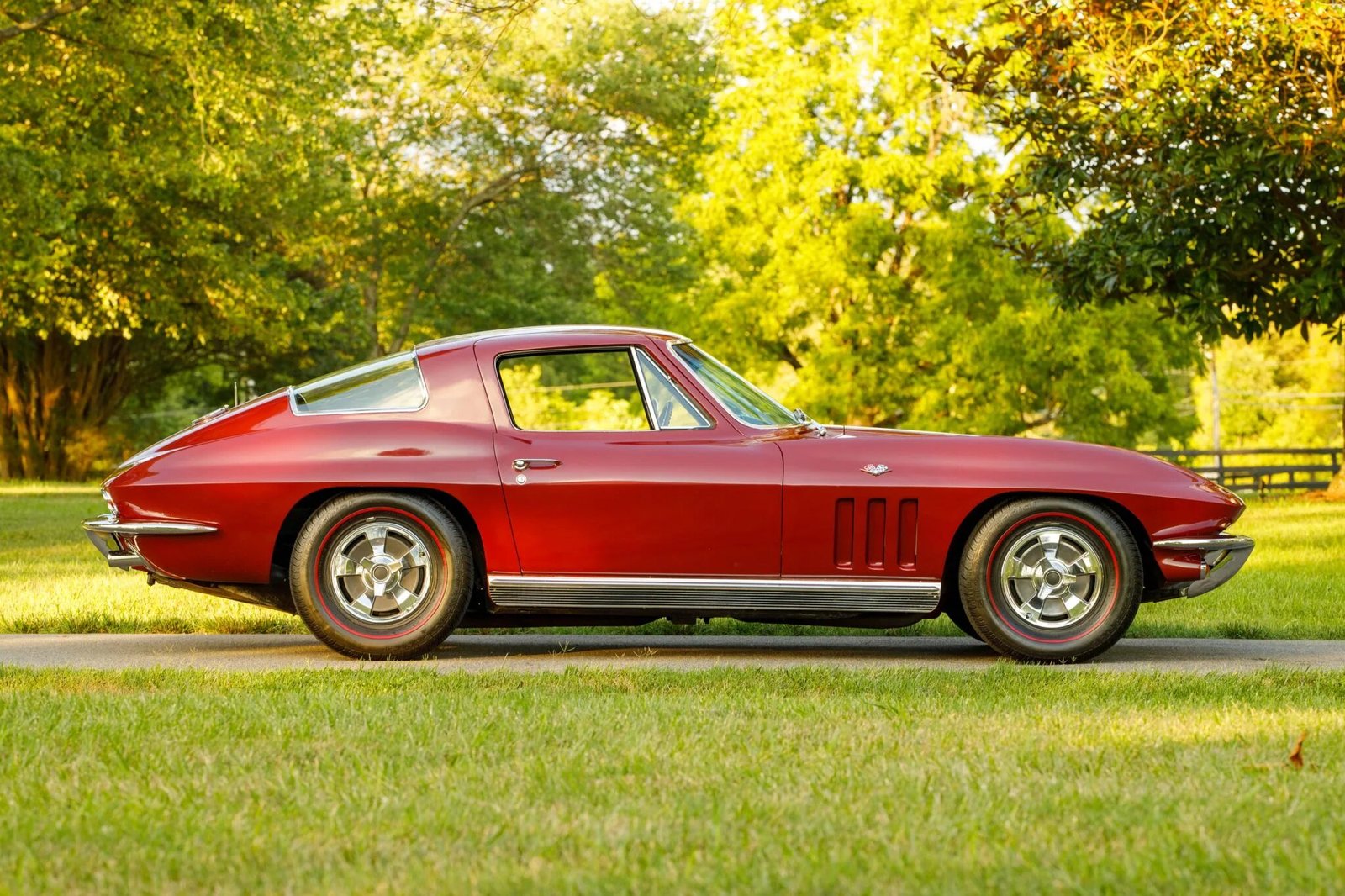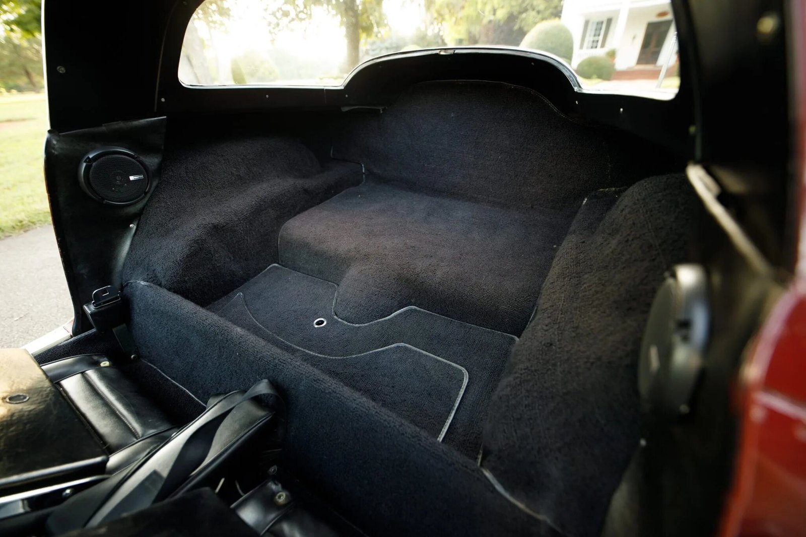 The body was refinished in its factory color of Milano Maroon (988AA) in the 1980s, details include split bumpers, hidden headlights, fender vents, rocker-panel accents, and dual exhaust outlets.
