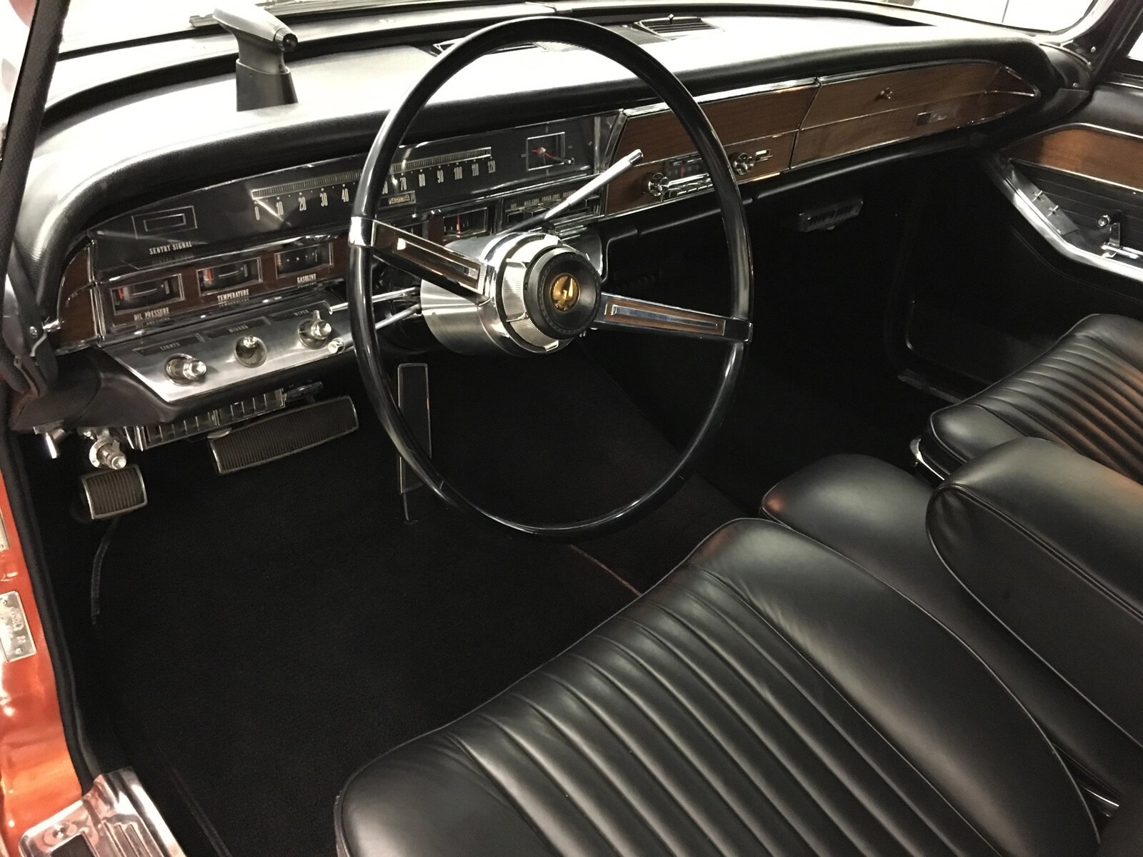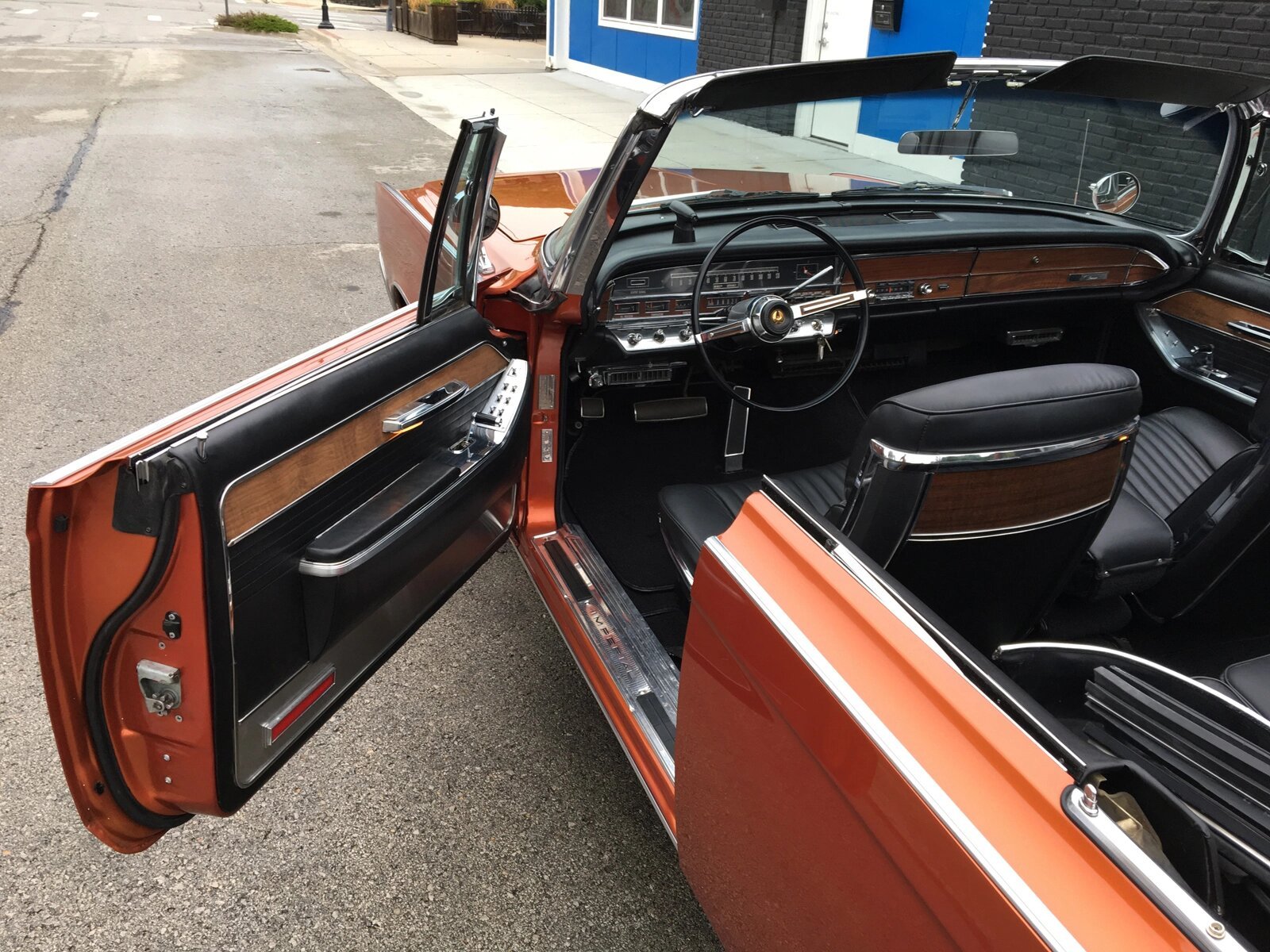 The interior retains its factory wood trim as well as its original door panel coverings, which were re-dyed in the proper black color.