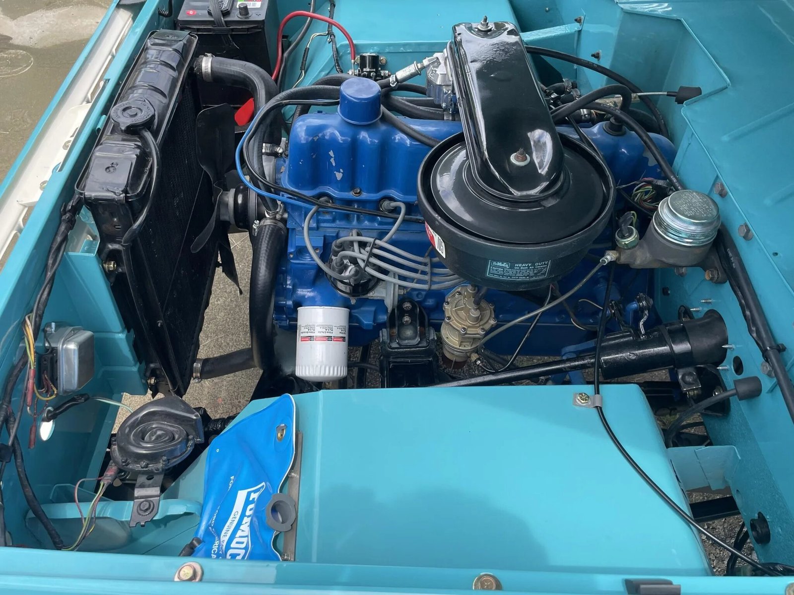 The 170ci inline-six is equipped with a single carburetor and sends power to the rear or all four wheels via a column-shifted three-speed manual transmission and a dual-range transfer case. Service in preparation for the sale have included fluid changes and replacement of the clutch, pressure plate, and throw-out bearing.