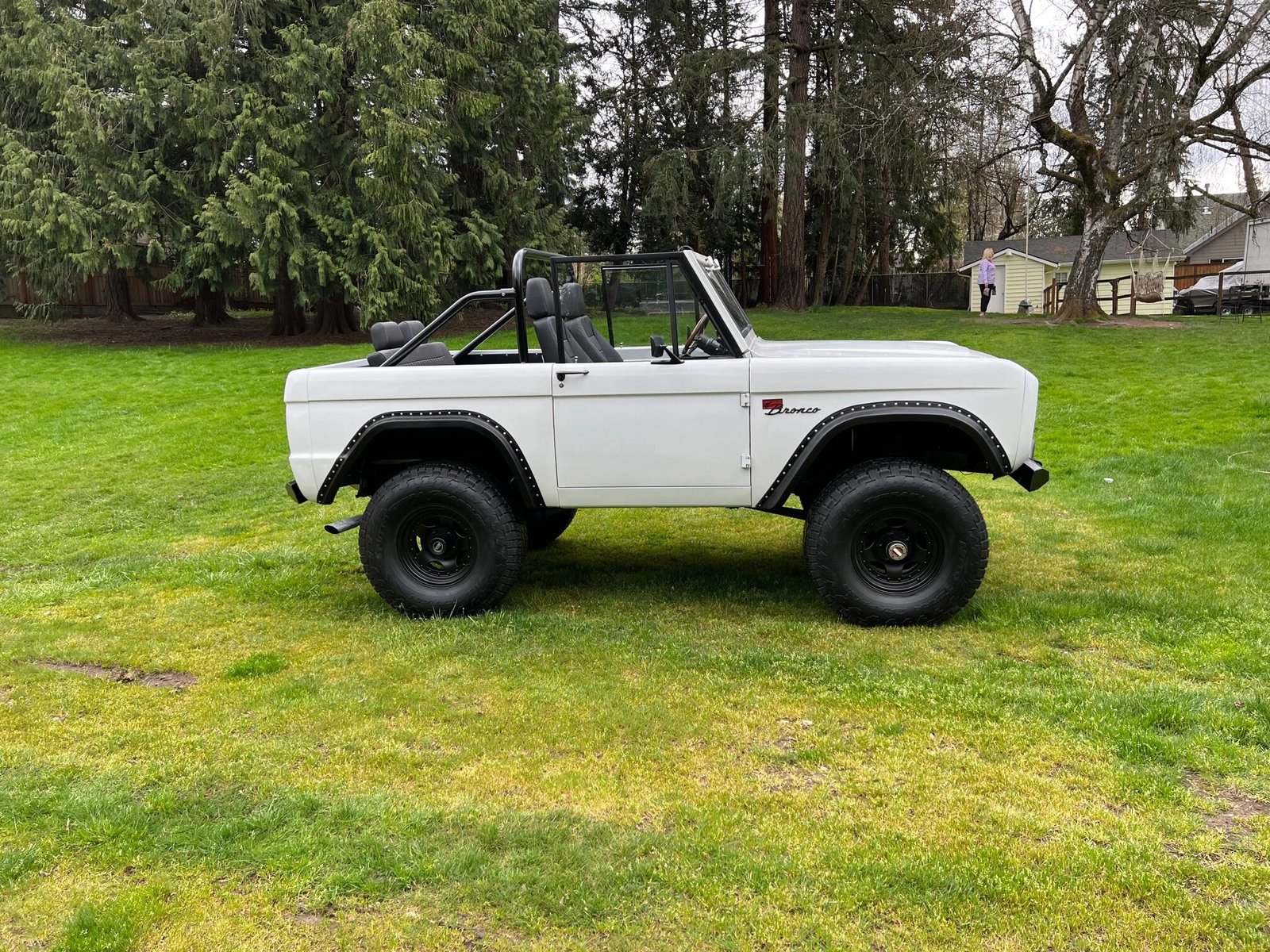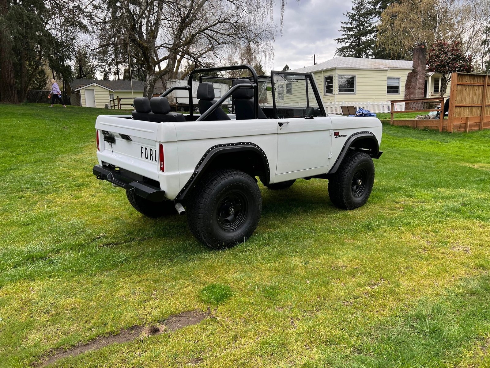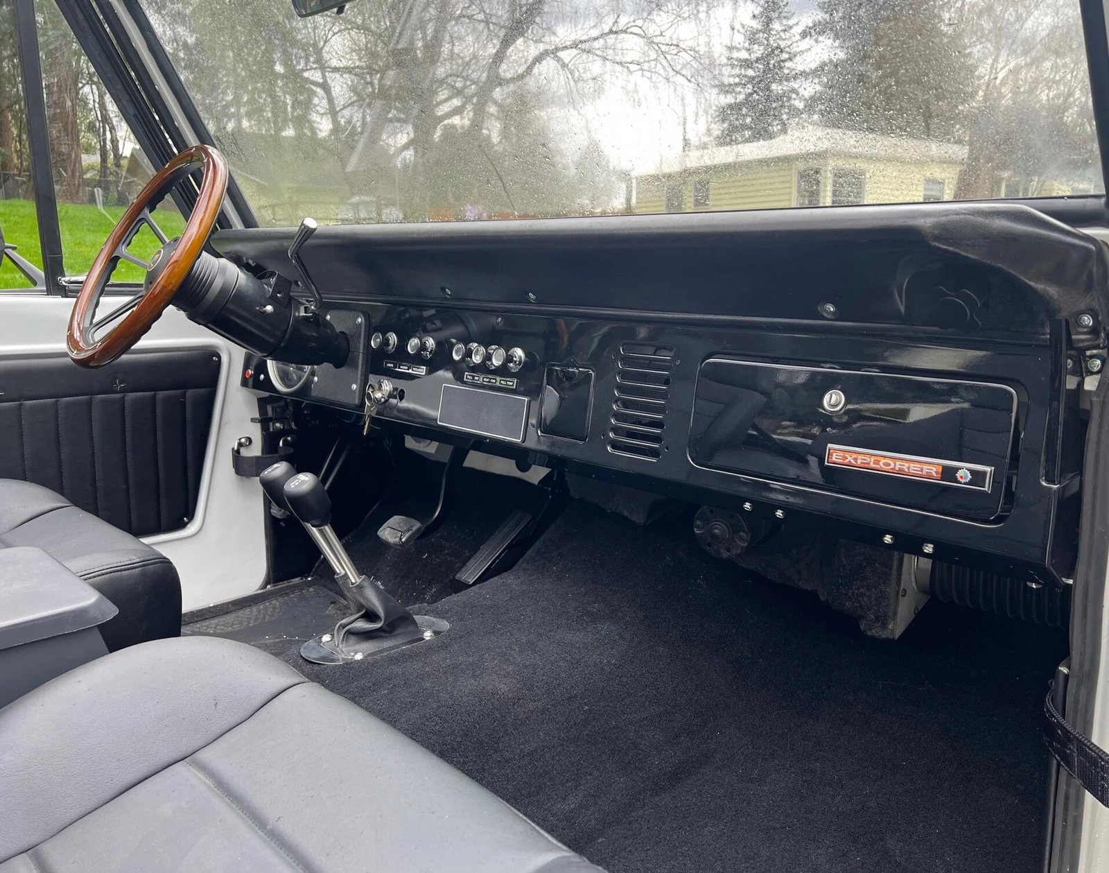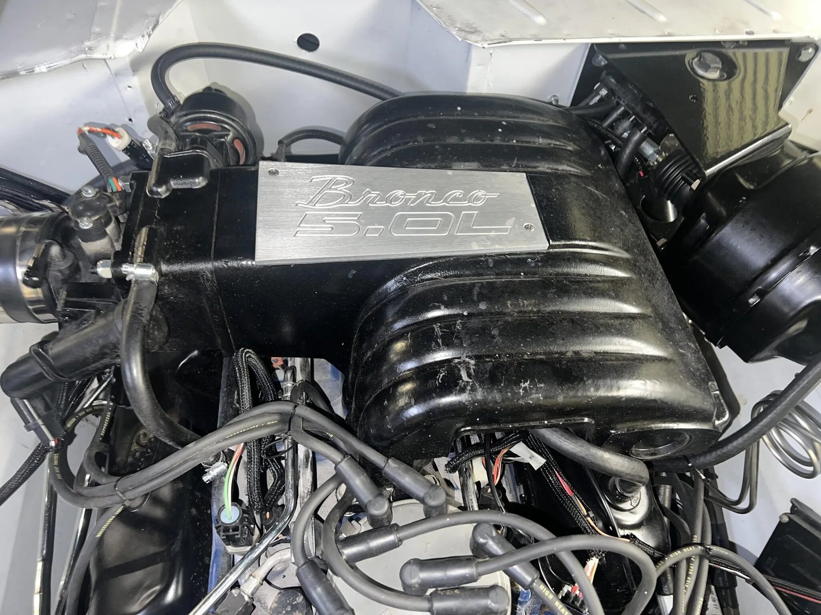 Work ave included refinishing the exterior in white, refurbishing the interior, and installing a rebuilt 5.0-liter V8 engine mated to a rebuilt three-speed automatic transmission and a dual-range twin-stick transfer case.