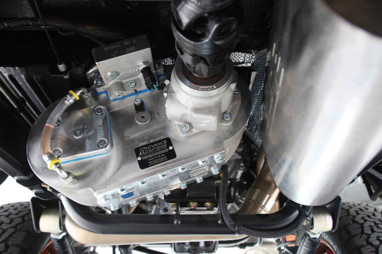 The 5-speed manual transmission sends power to all four wheels via an Atlas II 2-speed shift-on-the-fly transfer case and custom Currie Dana-based powder-coated axles equipped with ARB locking differentials.