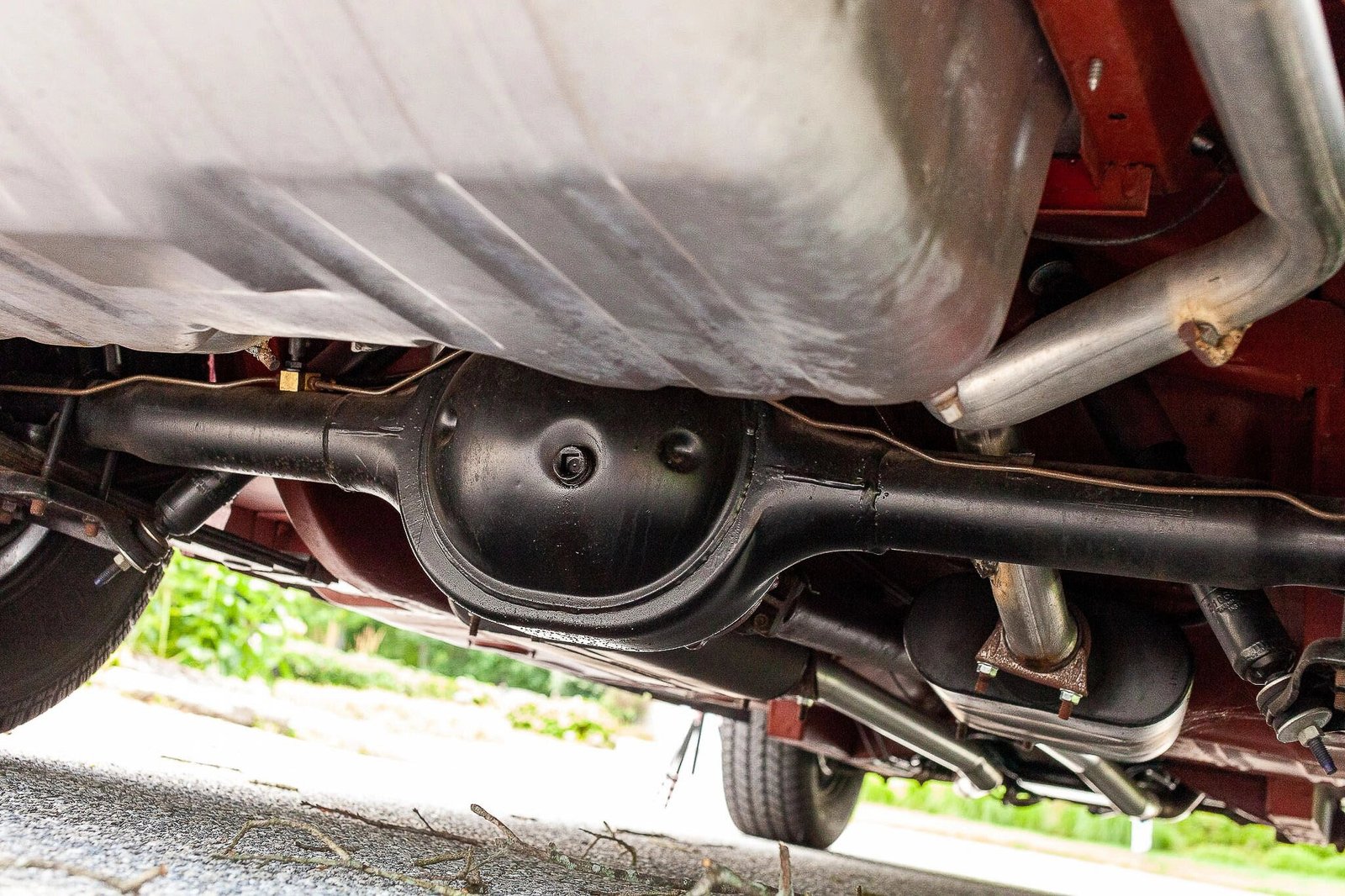 Equipment includes an 8″ rear axle, power-assisted steering, drum brakes, 14″ styled steel wheels, driving lights, quarter louvers, a dual exhaust, an armrest console, a push-button AM radio, and air conditioning.