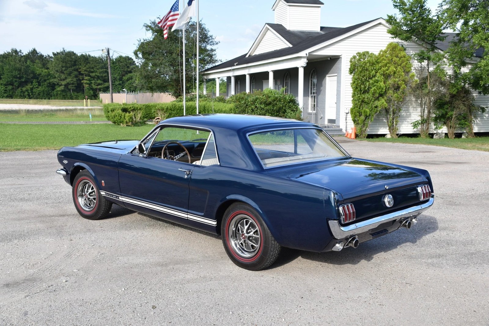 Finished in Nightmist Blue over a Parchment interior, this Mustang was ordered with factory options including the GT equipment package, interior decor group, visibility group, special handling package, styled steel wheels, and Rally-Pac clock/tachometer.