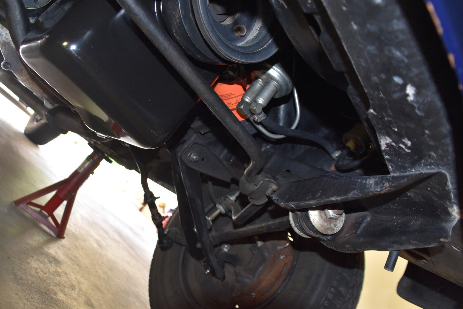 This Mustang is equipped with front disc brakes; the brake master cylinder was replaced in 2019, and the front and rear brake hoses were replaced in 2020.