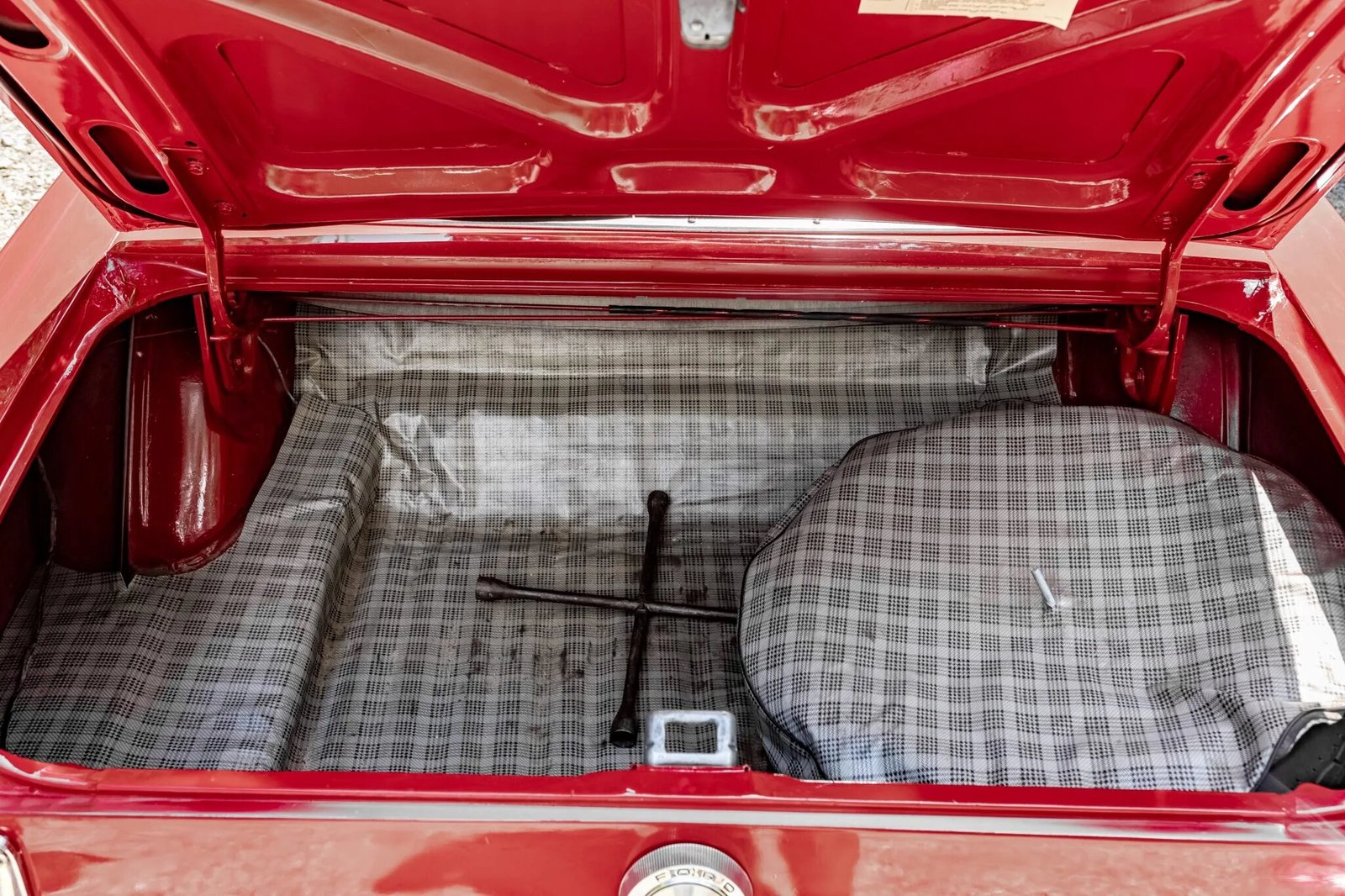 The car was finished from the factory in Wimbledon White (M) and was repainted red approximately three decades ago.