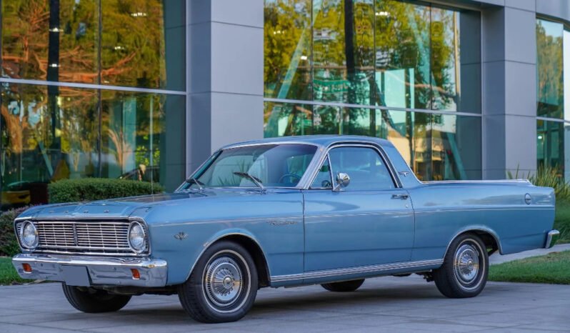 Equipment includes a tinted windshield, quarter windows, Ranchero and 289 badging, and a driver-side mirror in addition to chrome-finished bumpers, window surrounds, and rocker panel trim.