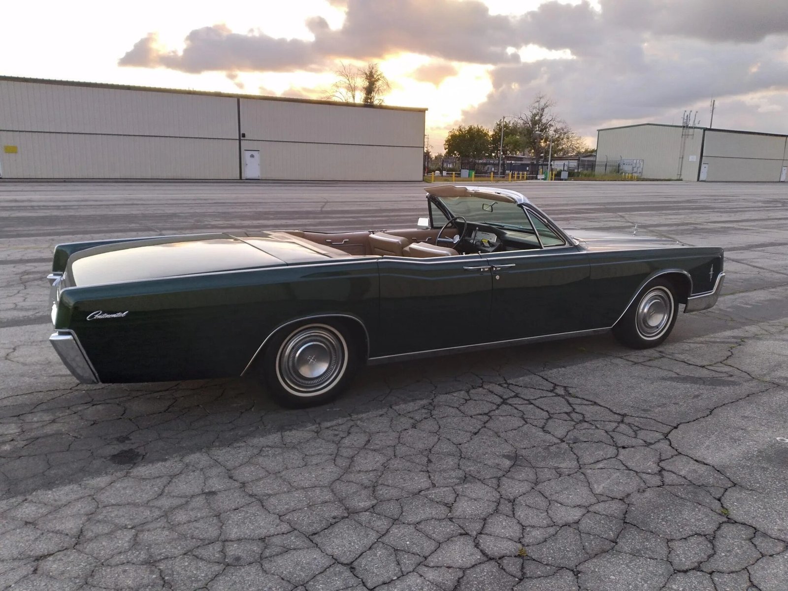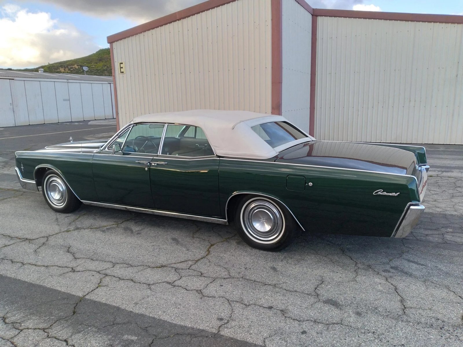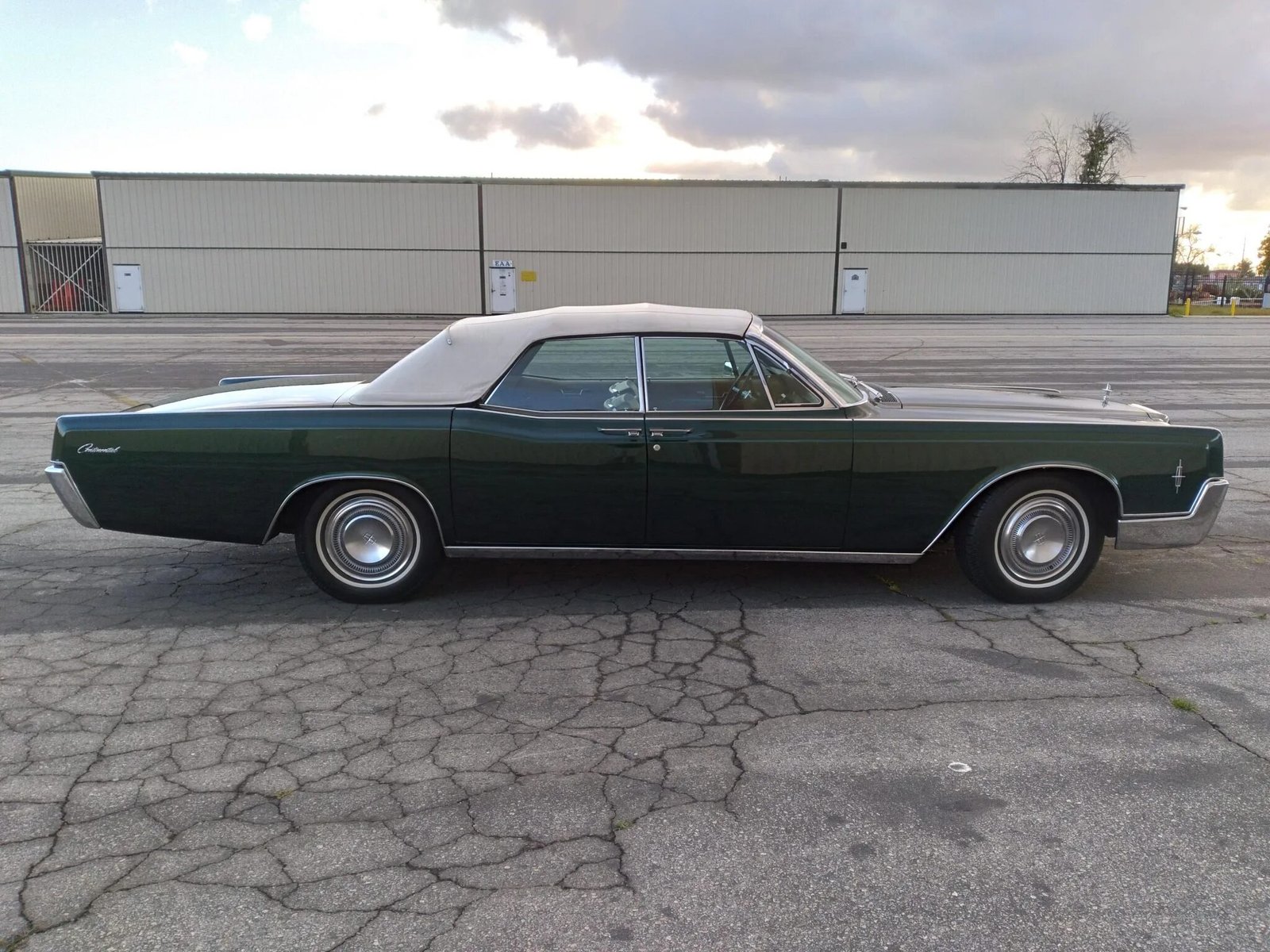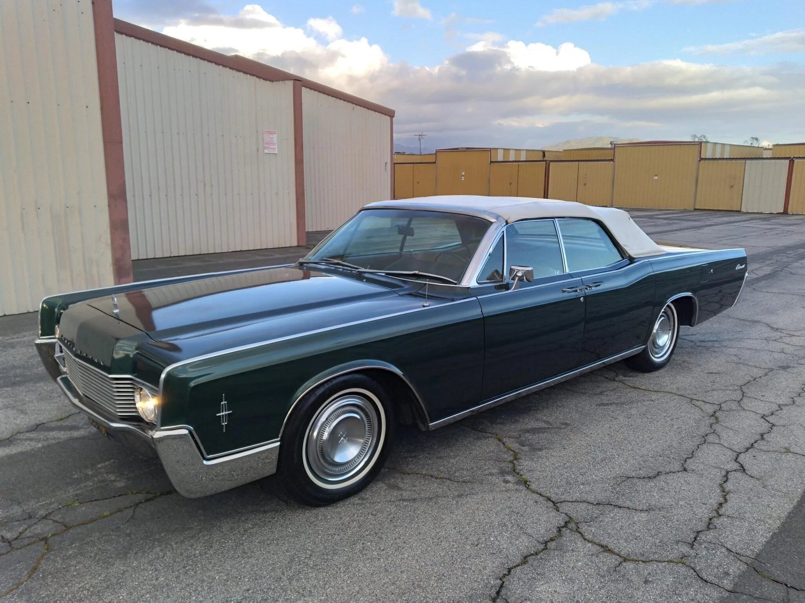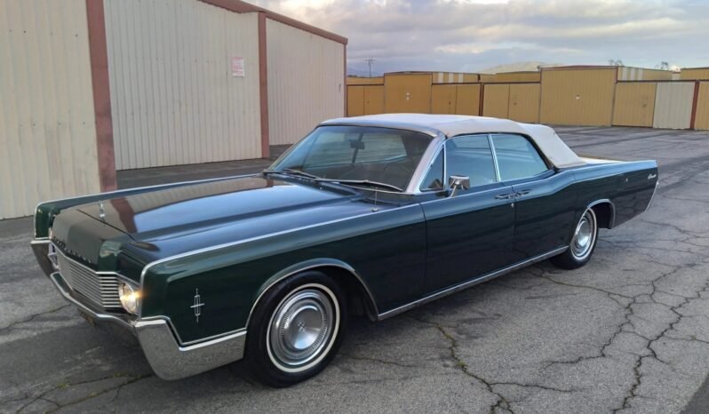 This 1966 Lincoln Continental convertible is powered by a 462ci V8 paired with a three-speed C6 automatic transmission, and additional equipment includes power-operated white soft top, 15″ steel wheels with full covers, reverse-hinged rear doors, a rear receiver hitch, power windows and door locks, a power-adjustable front bench seat, a tilt steering column, and an AM radio with an 8-track player.
