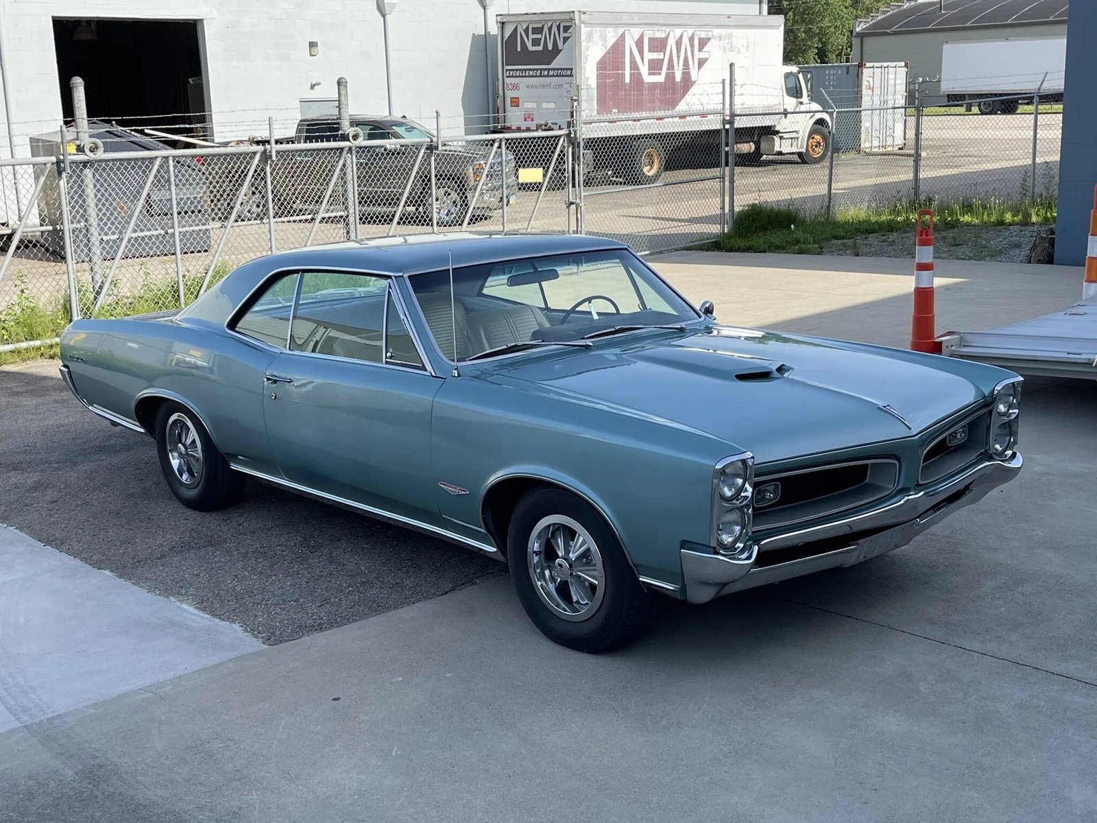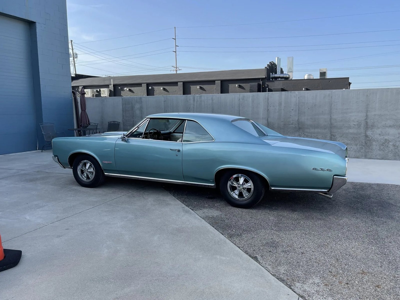 Aftermarket 14″ wheels wear chrome trim rings and Hurst-branded center caps along with BFGoodrich tires that were mounted in preparation for the sale.