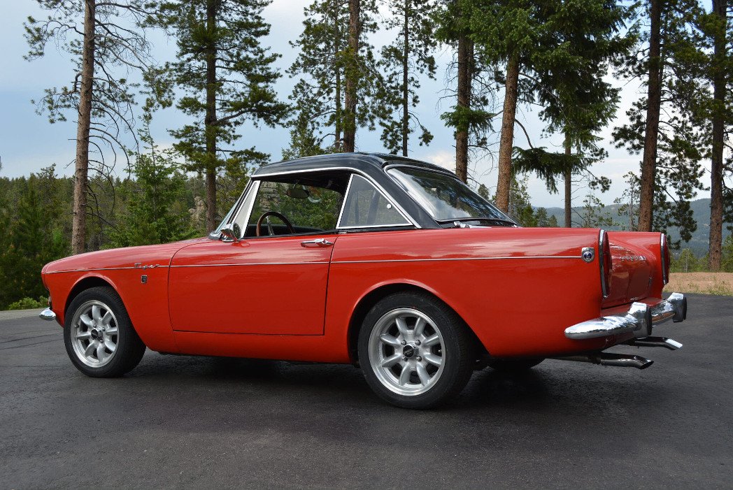 Alterations include a Nardi steering wheel, 15″ Panasport wheels, non-original horns, an Edelbrock intake, Holley 4-barrel carburetor, a Malory distributor, and a bolt-in roll bar.