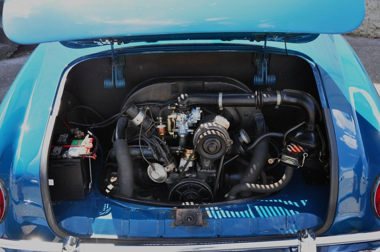 The car was repainted in its factory shade of Sea Blue during the restoration in the late 1990s.