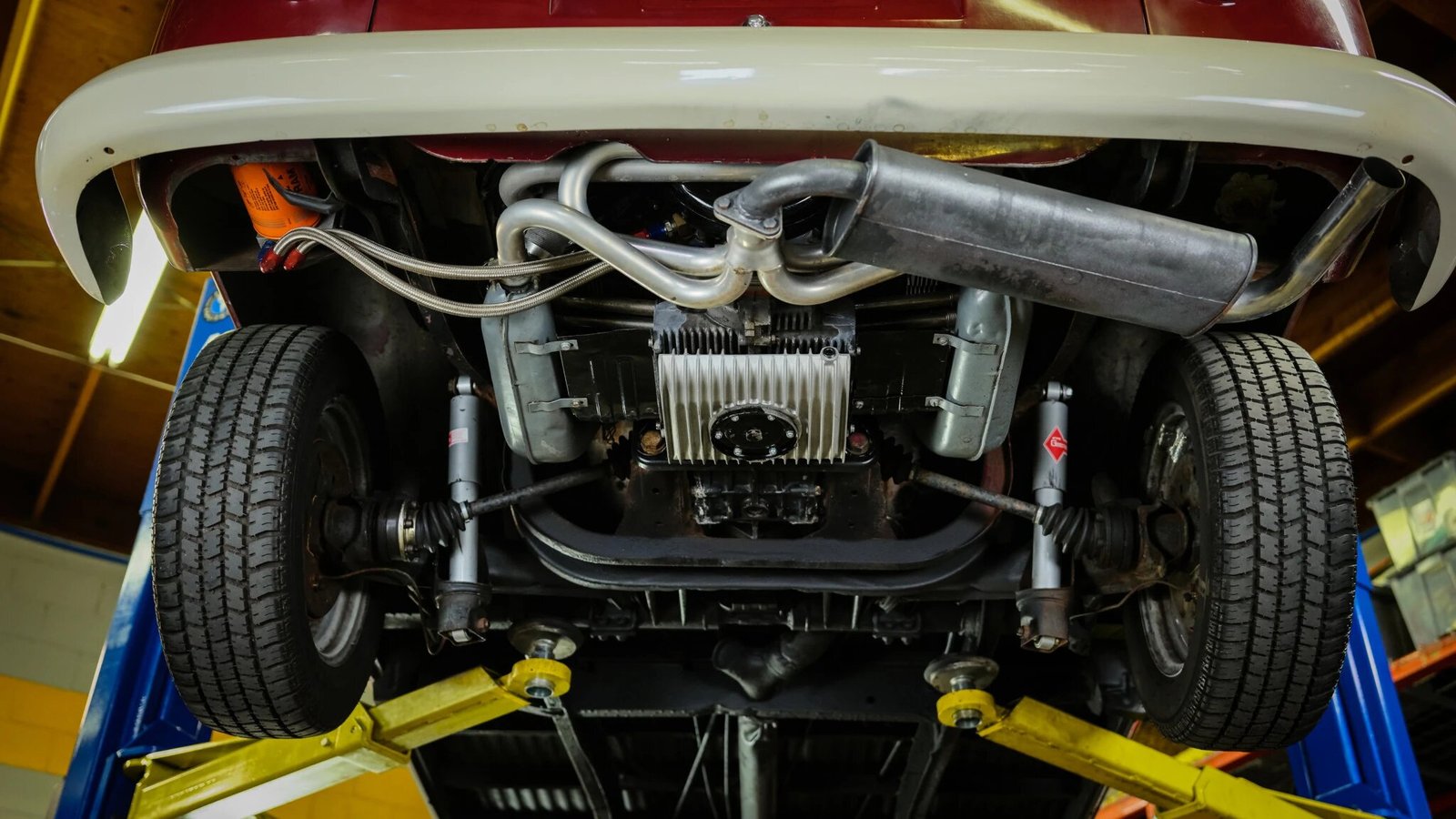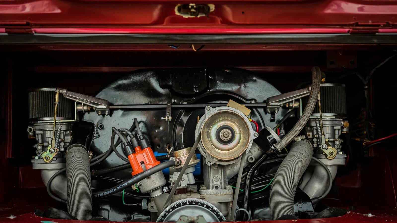 The 1,904cc flat-four was built by Classic Restoration and is fitted with dual Weber 40 IDF carburetors, a lightweight flywheel, ported and polished cylinder heads, a 74mm crankshaft, and a 30mm oil pump. Power is sent to the rear wheels through a four-speed IRS Type 1 transaxle.