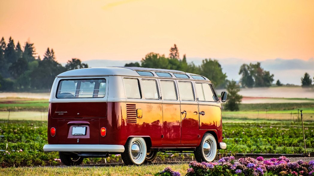 This 1966 Volkswagen Type 2 is a 21-window Sunroof Deluxe conversion, power is supplied by a 1,904cc flat-four linked with a four-speed manual transmission, and additional equipment includes a lowered suspension, front disc brakes, widened steel wheels, a vintage-style sound system, and more.