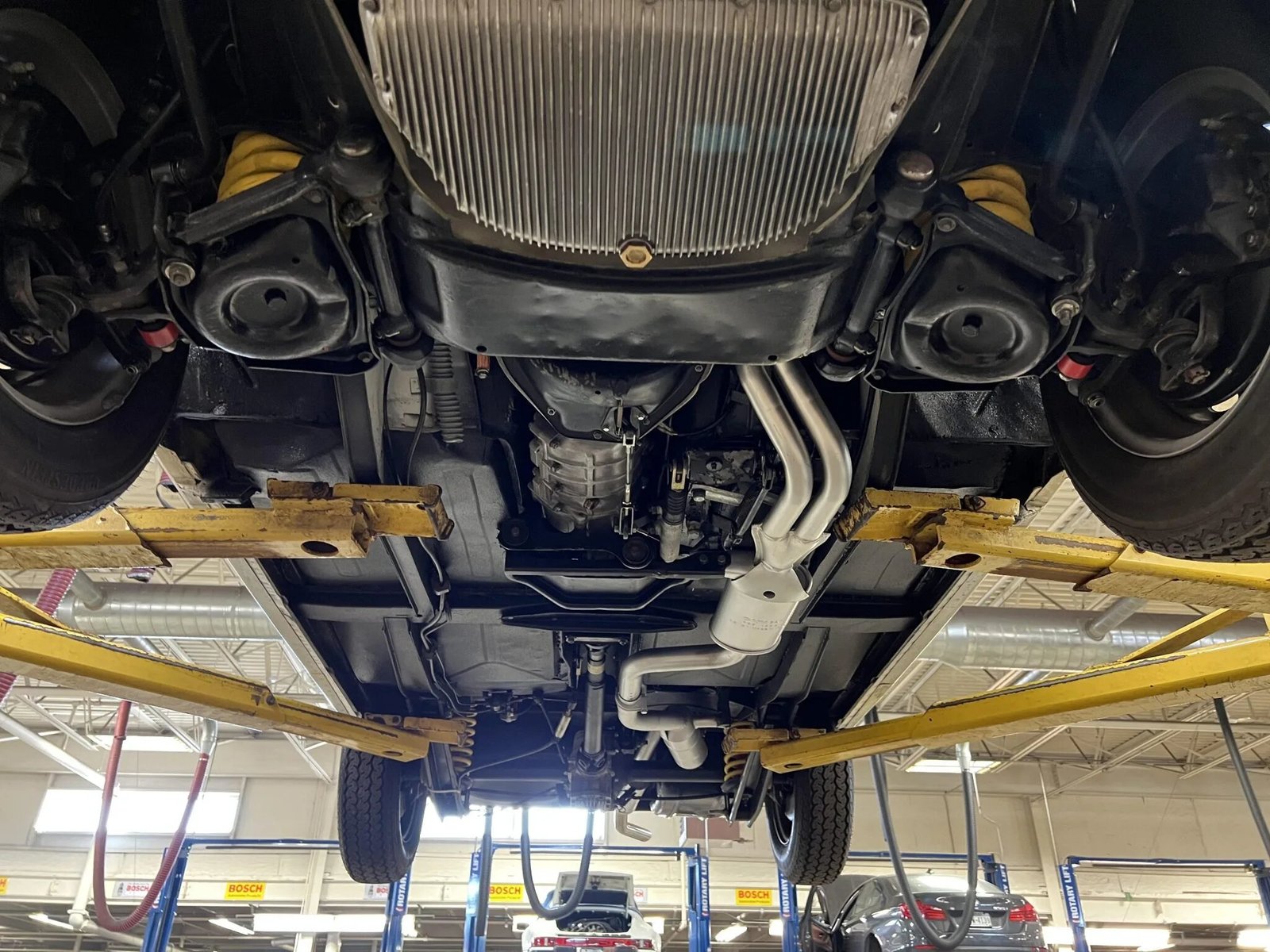 The cam plugs were resealed, the front exhaust pipe replaced, and an exhaust resonator added in preparation for sale.