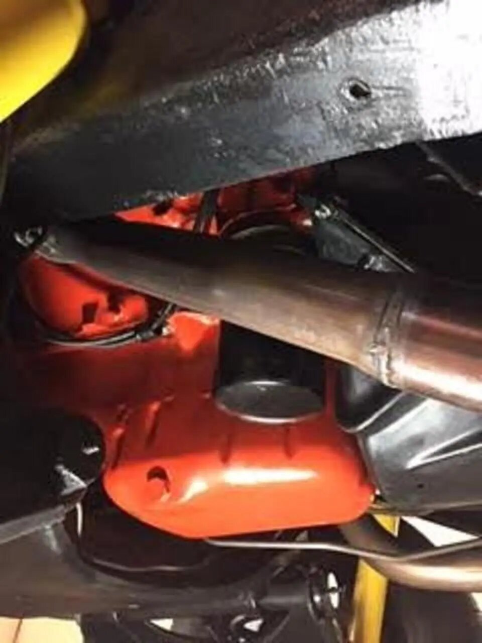 A four-barrel Holley spread-bore carburetor is fitted along with a dual-circuit brake master cylinder and dual MagnaFlow mufflers with an X-pipe.