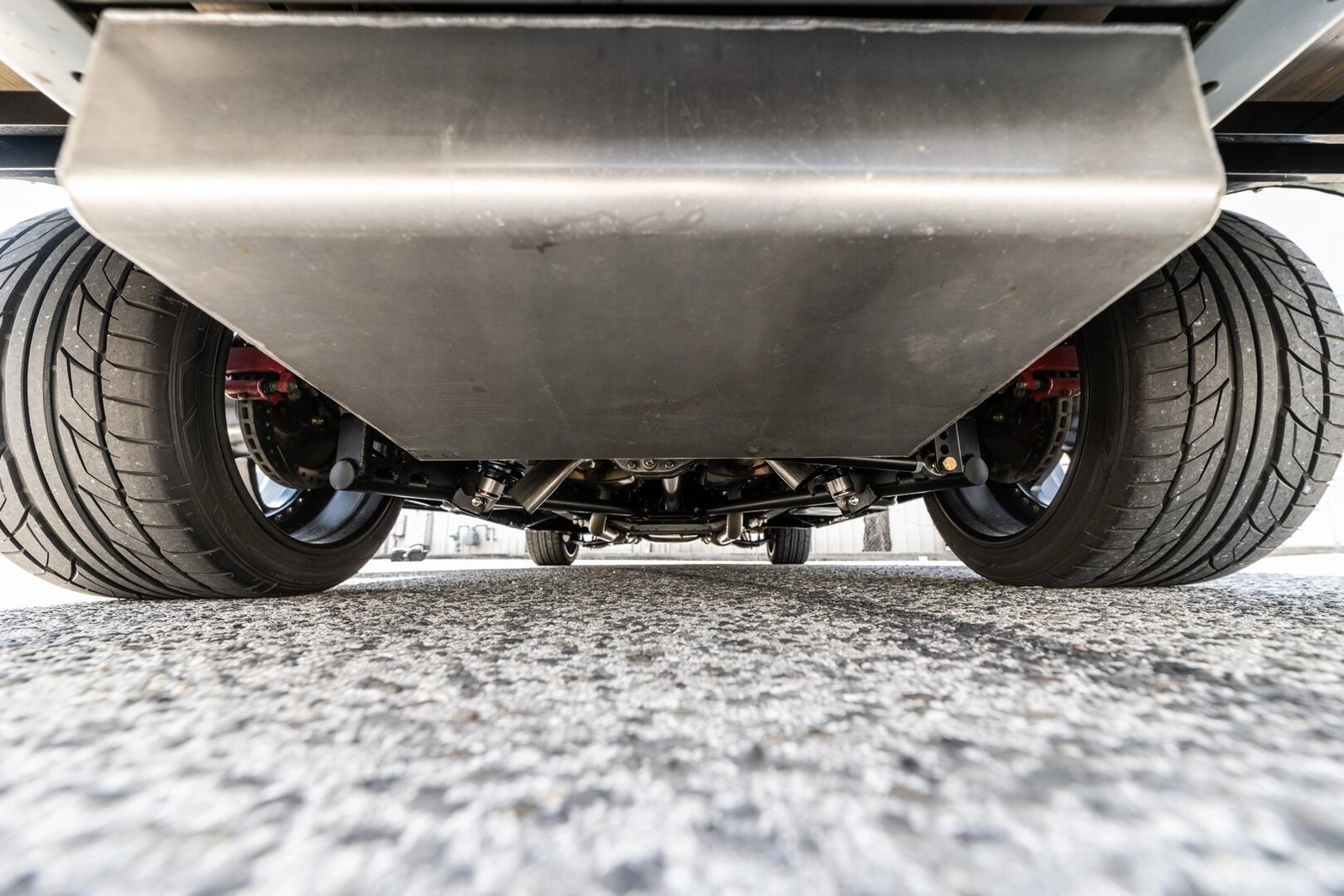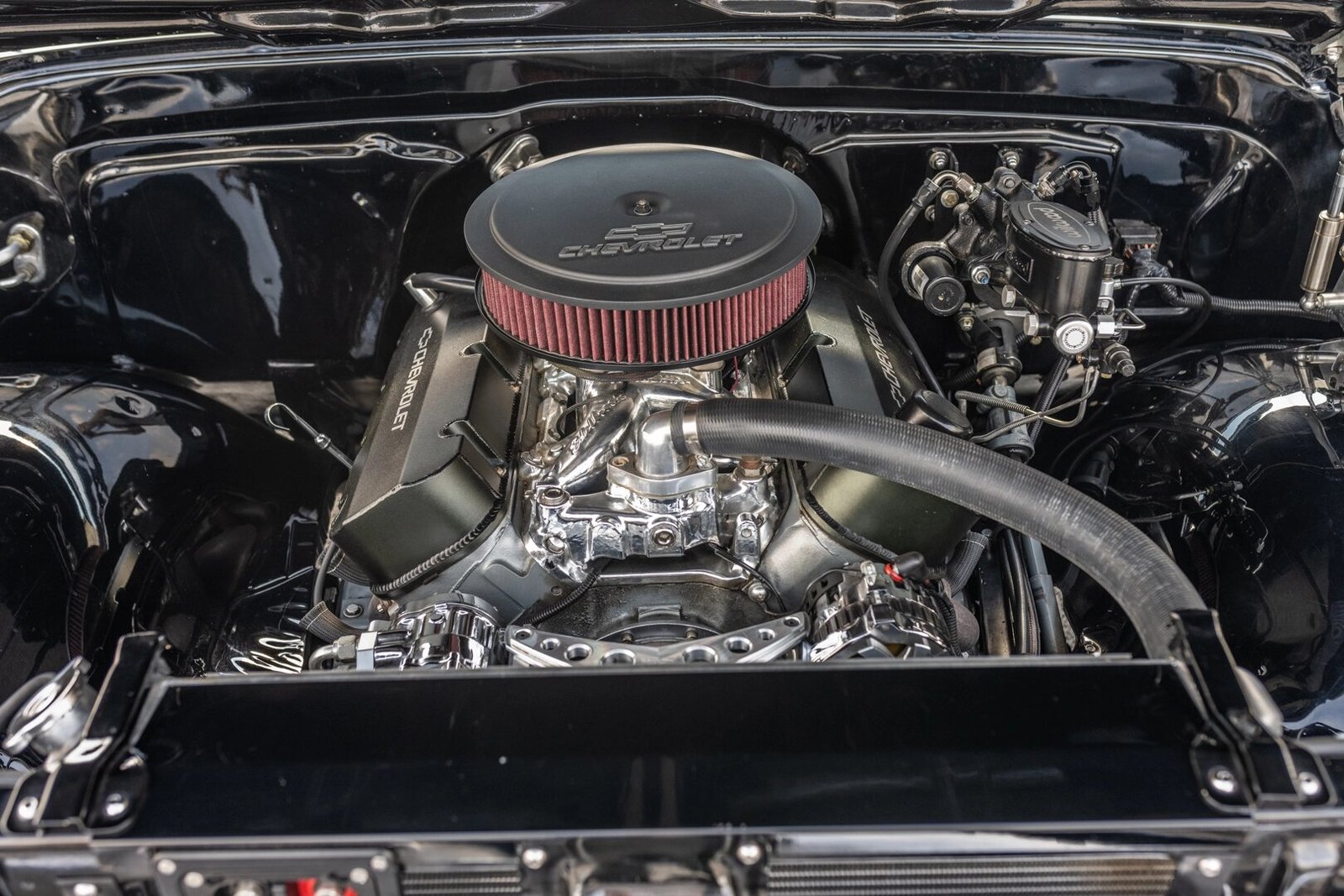 The cabin has reportedly been lined with Dynamat sound deadening material and houses seats that have been reupholstered in black leather with a matching dashboard, door panels, and loop carpets protected by Chevrolet-branded mats.