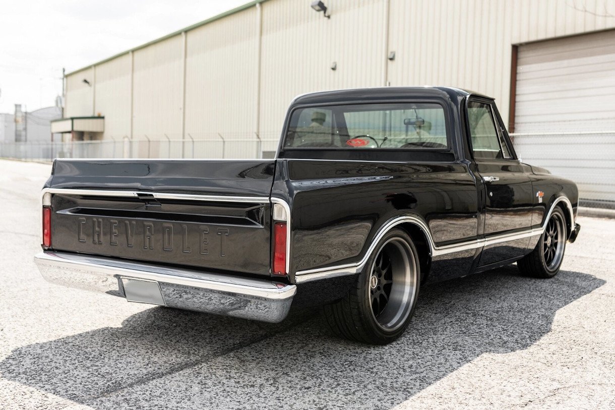 This 1967 Chevrolet C10 was subsequently refurbished and modified with the installation of a 454ci V8 paired with a Turbo-Hydramatic three-speed automatic transmission as well as a repaint in black and an interior refresh in matching leather.
