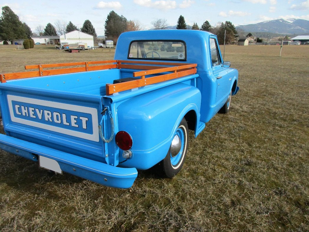 The truck has been lowered 3″ and that the four-wheel drum brakes were overhauled during the refurbishment.