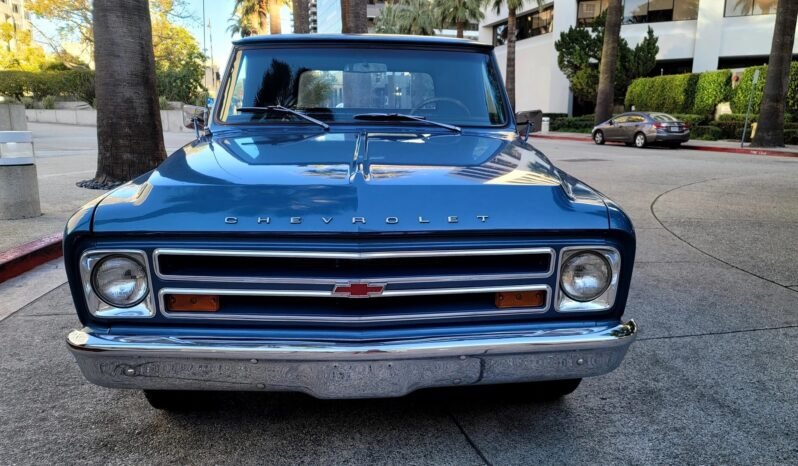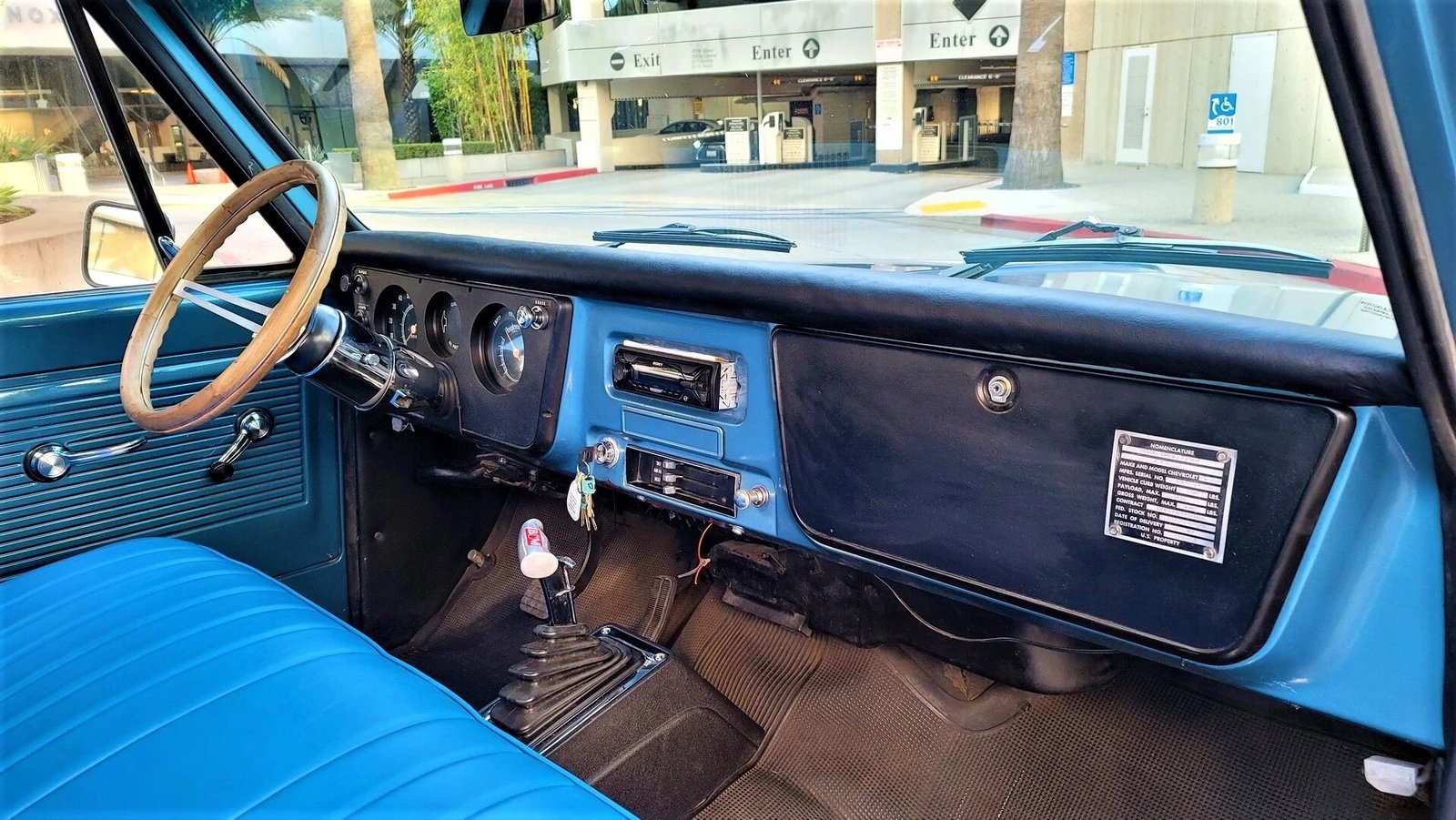 This 1967 Chevrolet C10 is a stepside pickup that is finished in blue over matching vinyl upholstery and powered by a replacement 350ci V8 paired with a three-speed automatic transmission.