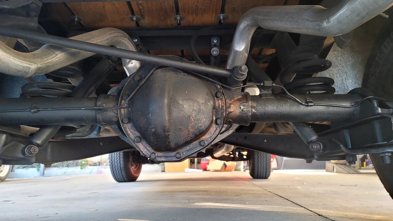 Power is delivered to the rear wheels through a three-speed TH350 automatic transmission fitted with a mild shift kit and operated via a floor-mounted B&M shifter.