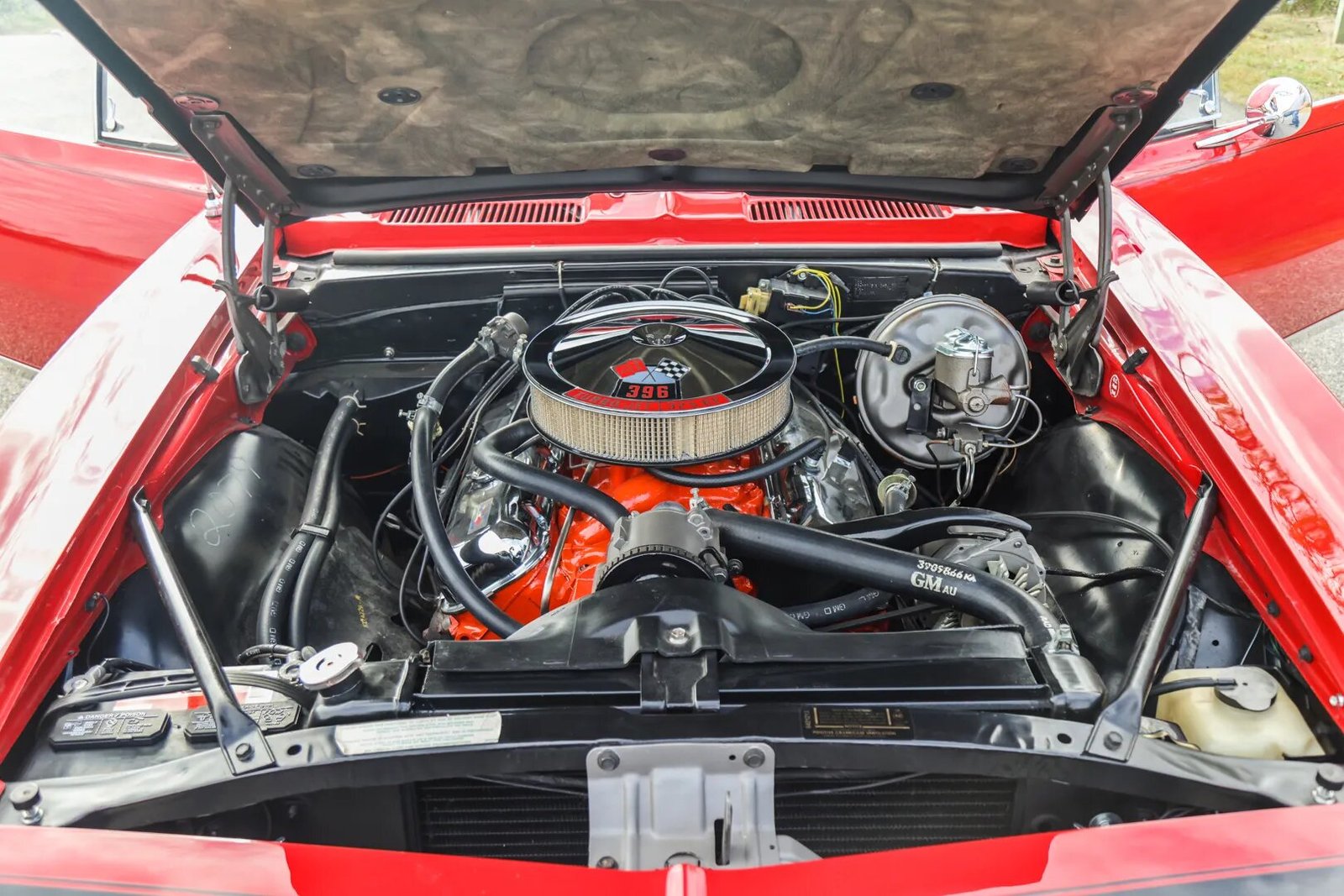 The 396ci Turbojet V8 was factory rated at 325 horsepower and features a GM air injection reactor. A tune-up was carried out in preparation for sale. Power is delivered to the rear wheels through a replacement three-speed Turbo Hydramatic automatic transmission and a 12-bolt rear axle. The exhaust system is a replacement unit.