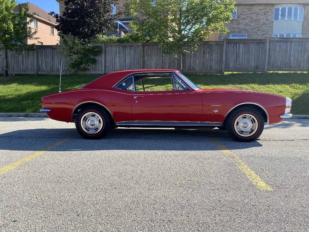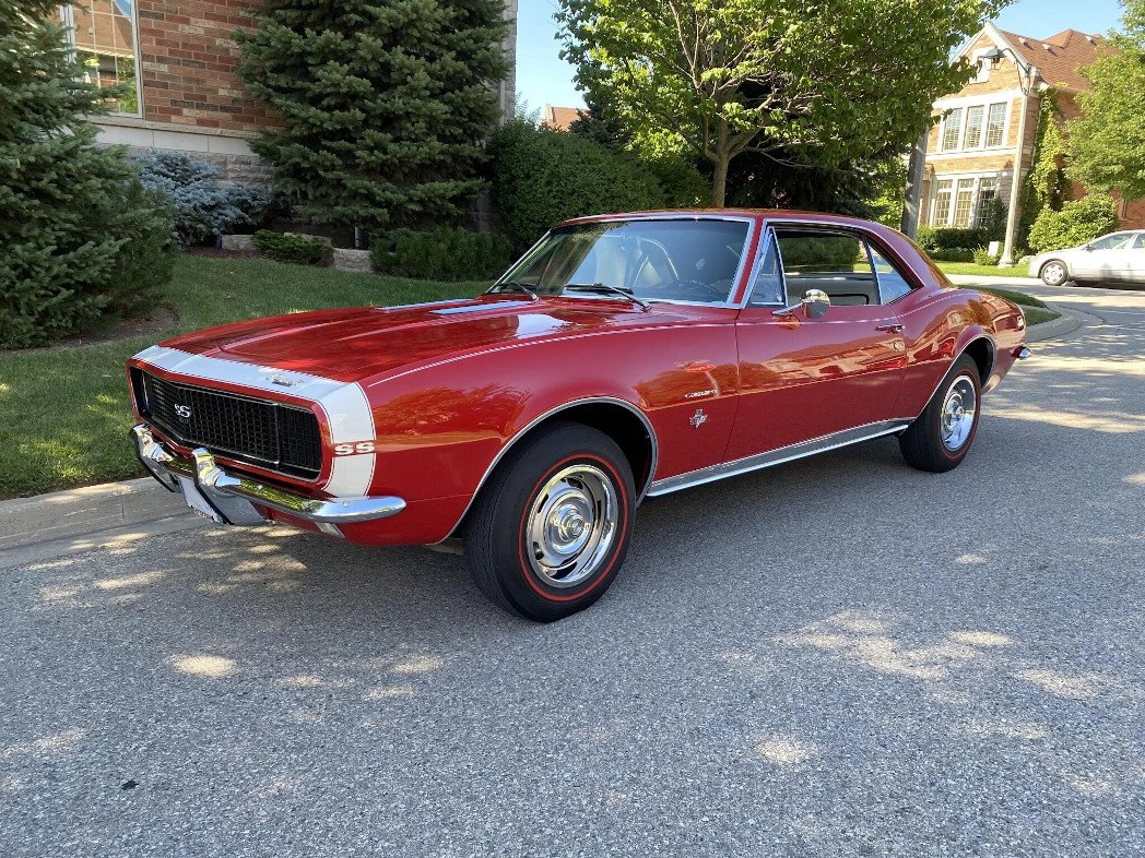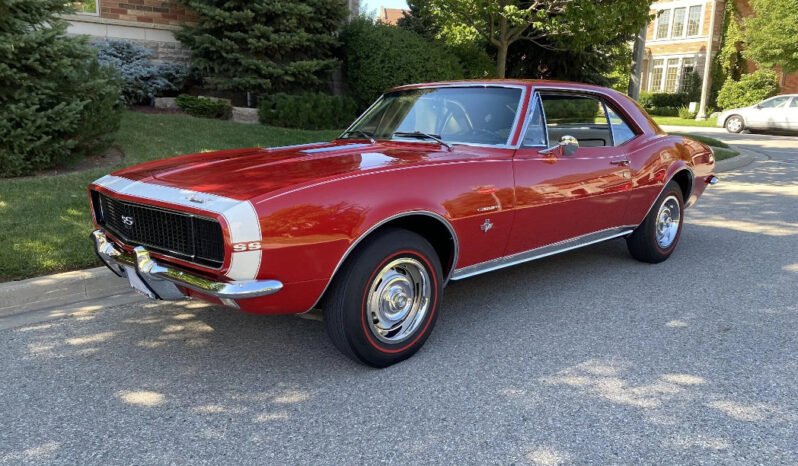This 1967 Chevrolet Camaro SS is finished in Bolero Red over Parchment vinyl upholstery and is powered by a 350ci V8 paired with a four-speed manual transmission.