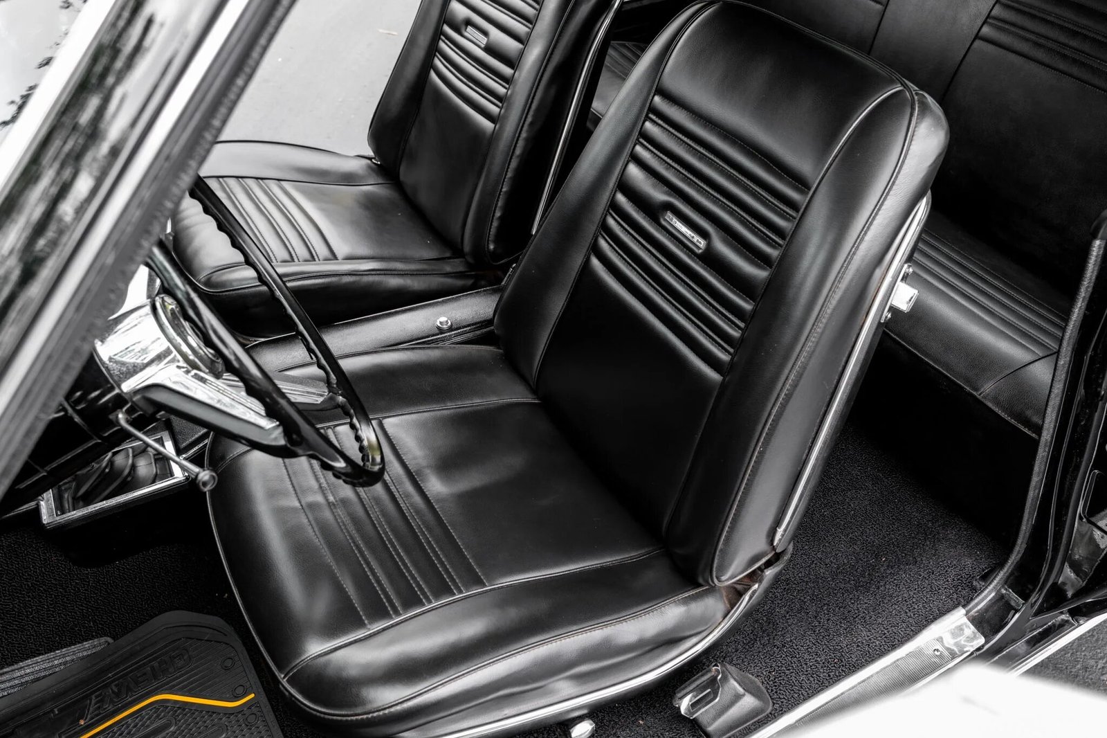 Amenities include power steering, a Hurst shifter, lap belts, and Chevrolet-branded rubber floor mats.