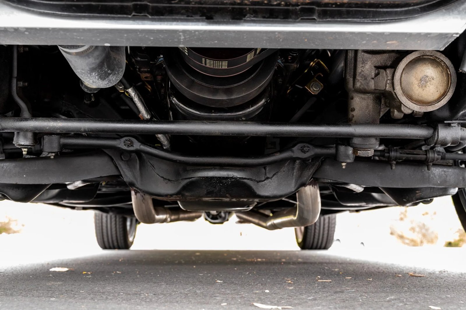 Power is transferred to the rear wheels through a four-speed Muncie manual transmission and a 12-bolt Positraction rear axle. A new clutch assembly was installed, the flywheel was resurfaced, and the differential fluid was changed in preparation for sale.