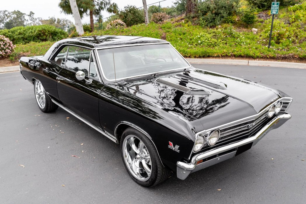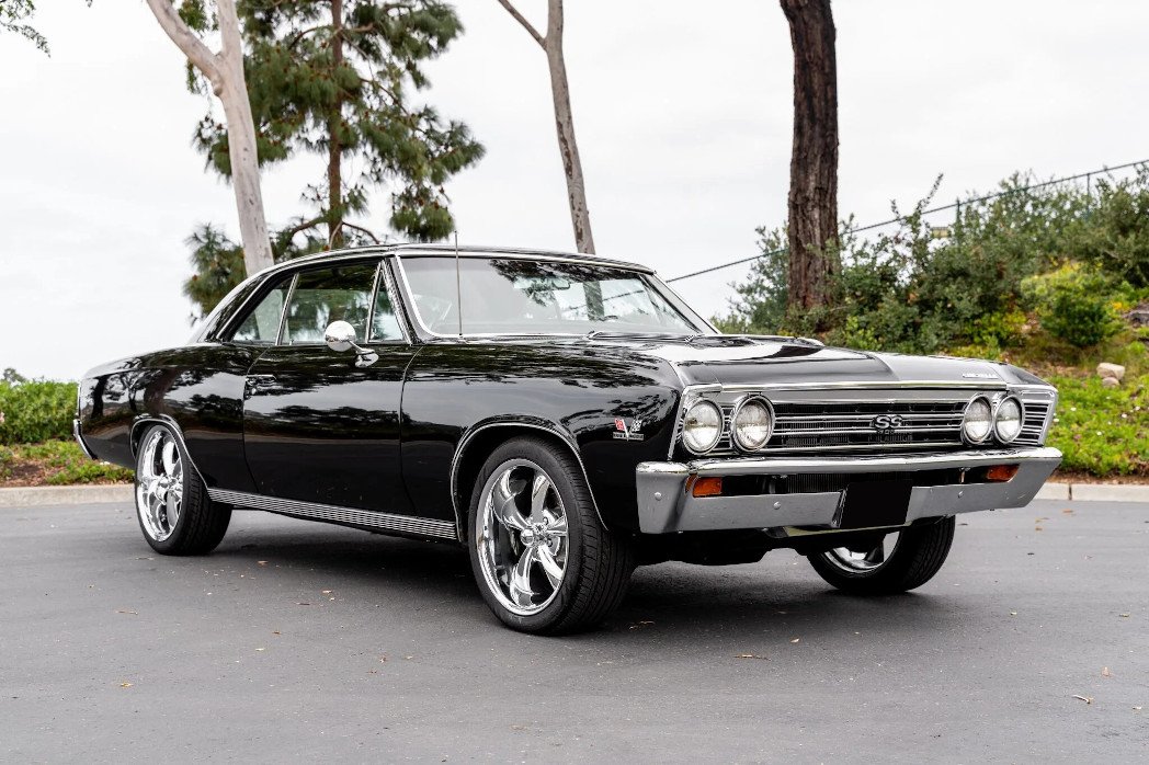 Replacement chrome bumpers have been fitted, and additional exterior features include a vented hood, SS badging, and dual side mirrors.