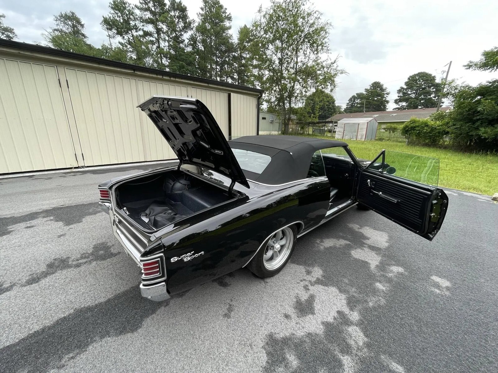 This 1967 Chevrolet Chevelle SS396 convertible is powered by a 6.2-liter LS3 V8 linked with a Tremec five-speed manual transmission and is finished in black over black vinyl upholstery. Details include a power-operated black soft top, Global West front suspension components, a C4-style rear suspension, power steering, four-wheel disc brakes, 17″ American Racing wheels, Vintage Air climate control, a Flaming River tilting column, a push-button radio, a polished serpentine drive system, and tubular exhaust headers.