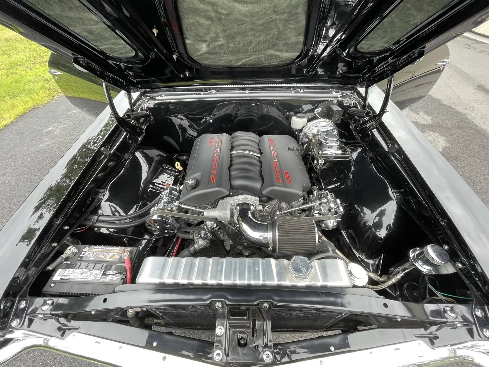 The body was repainted in black and features a power-operated black convertible top, Super Sport and 427 badging, an SS-style hood, a black tail panel, quadruple headlights, and chrome trim on the grille, bumpers, wheel arches, and window surrounds.
