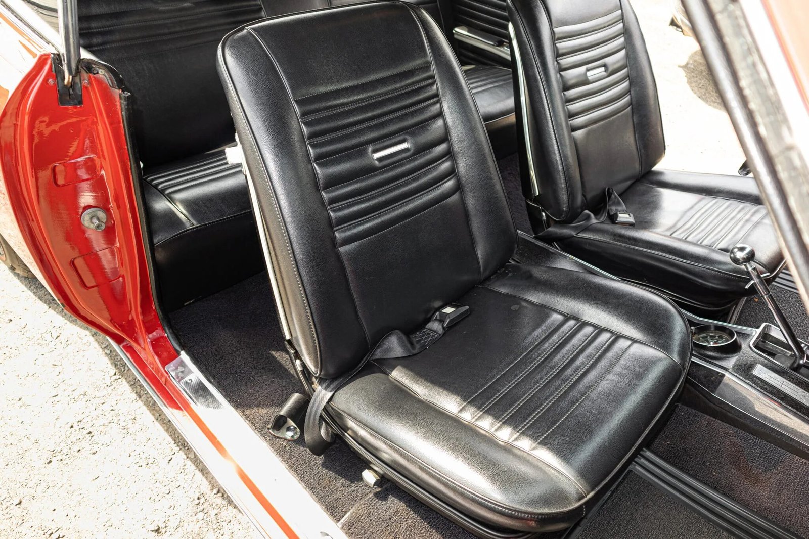 Power is provided by a 396ci V8 paired with a Muncie four-speed manual transmission, and the car is finished in red over black interior.