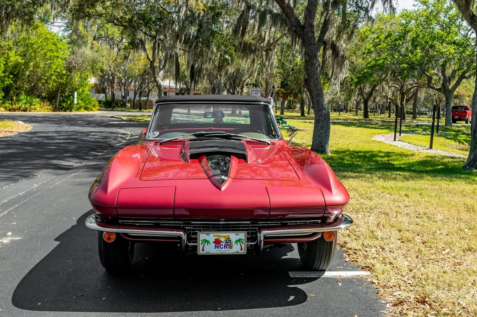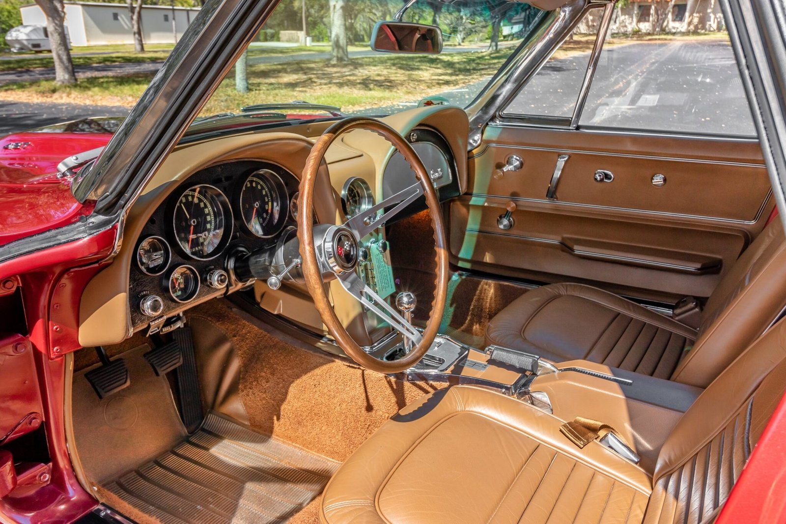 The 427ci L68 V8 features triple two-barrel carburetors and is mated to a four-speed manual transmission.